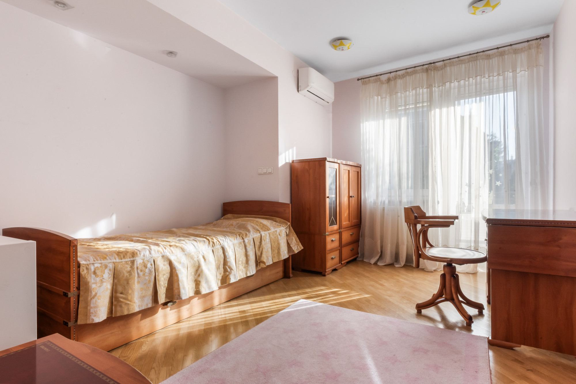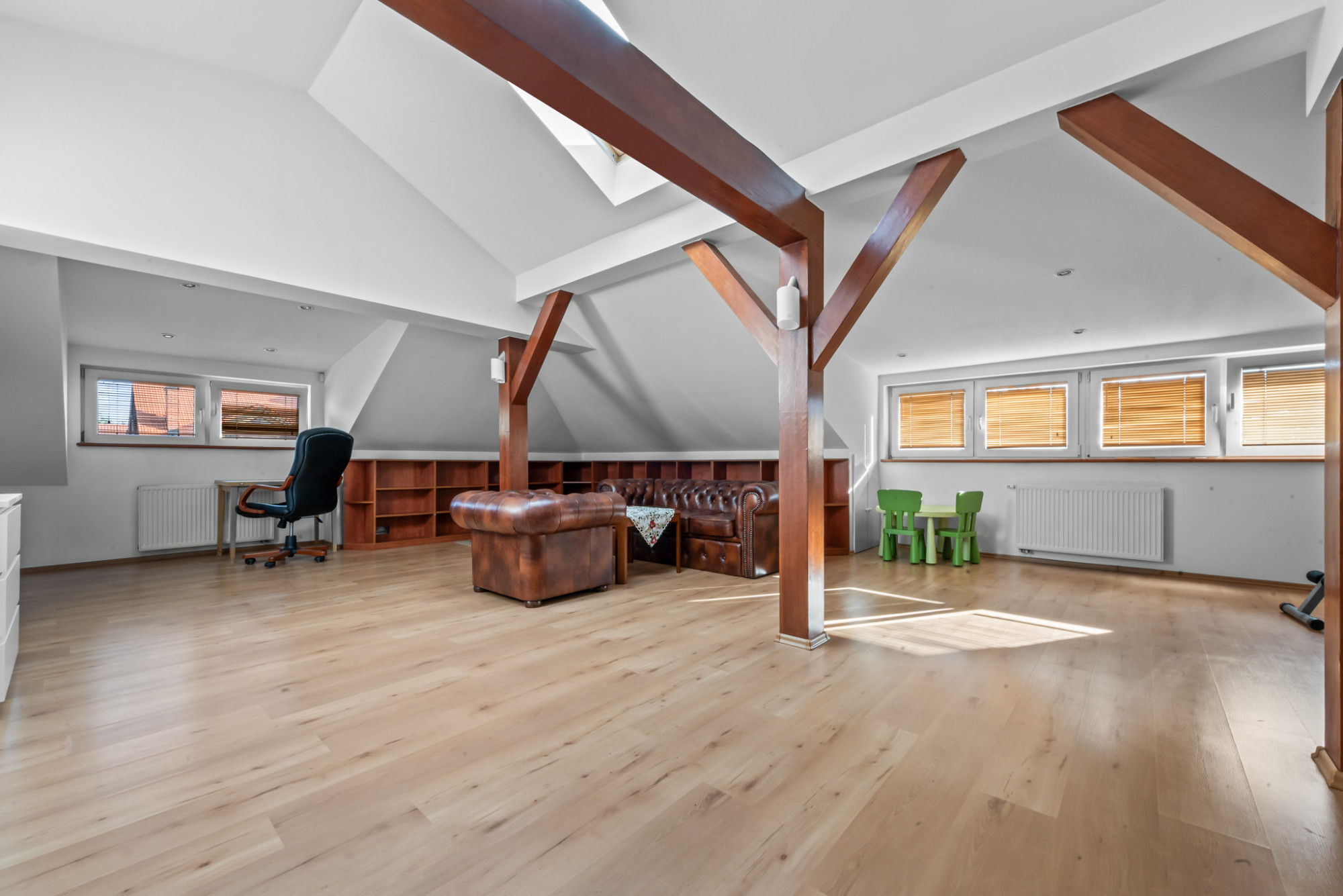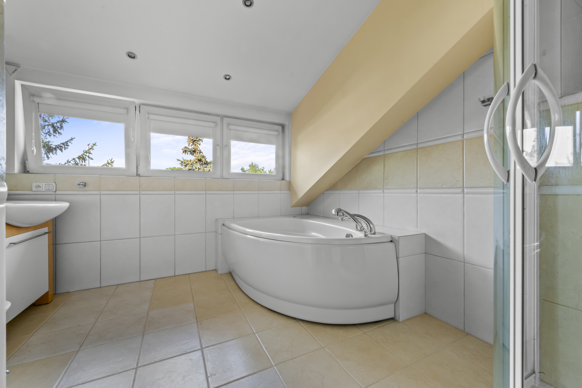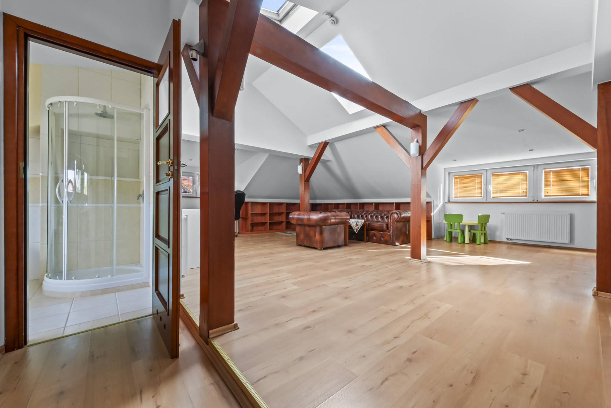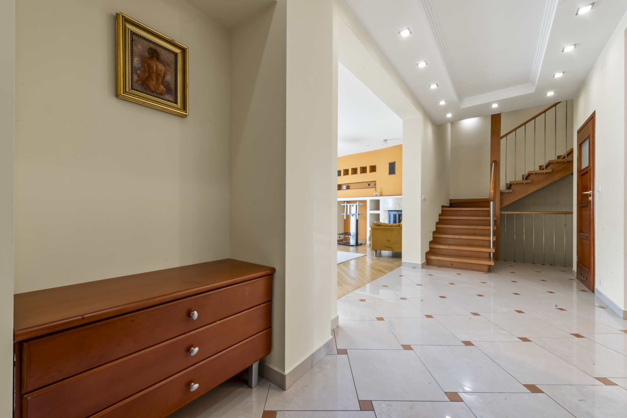 LAYOUT Ground Floor - approx. 80 m² • spacious living room • two dining areas • kitchen • guest toilet • hall and vestibule First Floor - approx. 80 m² • 2 bedrooms with balcony access • bedroom • bathroom • walk-in wardrobe • hall Attic - approx. 80 m² • large bedroom / multifunctional room • bathroom • walk-in wardrobe • corridor Basement - approx. 110 m² • recreation room • 2 additional rooms • bathroom • utility room • boiler room • two-car garage LOCATION - WILANÓW NISKI ✔ prestigious neighborhood with villas, embassies, and residences ✔ close to top international schools, including: - The British School - International American School - Lycée Français de Varsovie - Willy-Brandt School - International European School ✔ shops, services, and restaurants nearby ✔ walking distance to Wilanów Palace and park ✔ cycling paths to Powsin Park and the Vistula River beaches ADDITIONAL INFORMATION • gas heating • alarm system • air conditioning on the 1st and 2nd floors • security deposit: 2-month rent • utilities paid according to meters • two-car garage Contact us to arrange a viewing. This is an exceptional home for families looking for comfort, privacy, and a prestigious location in Warsaw. SZCZEGÓŁY OFERTY