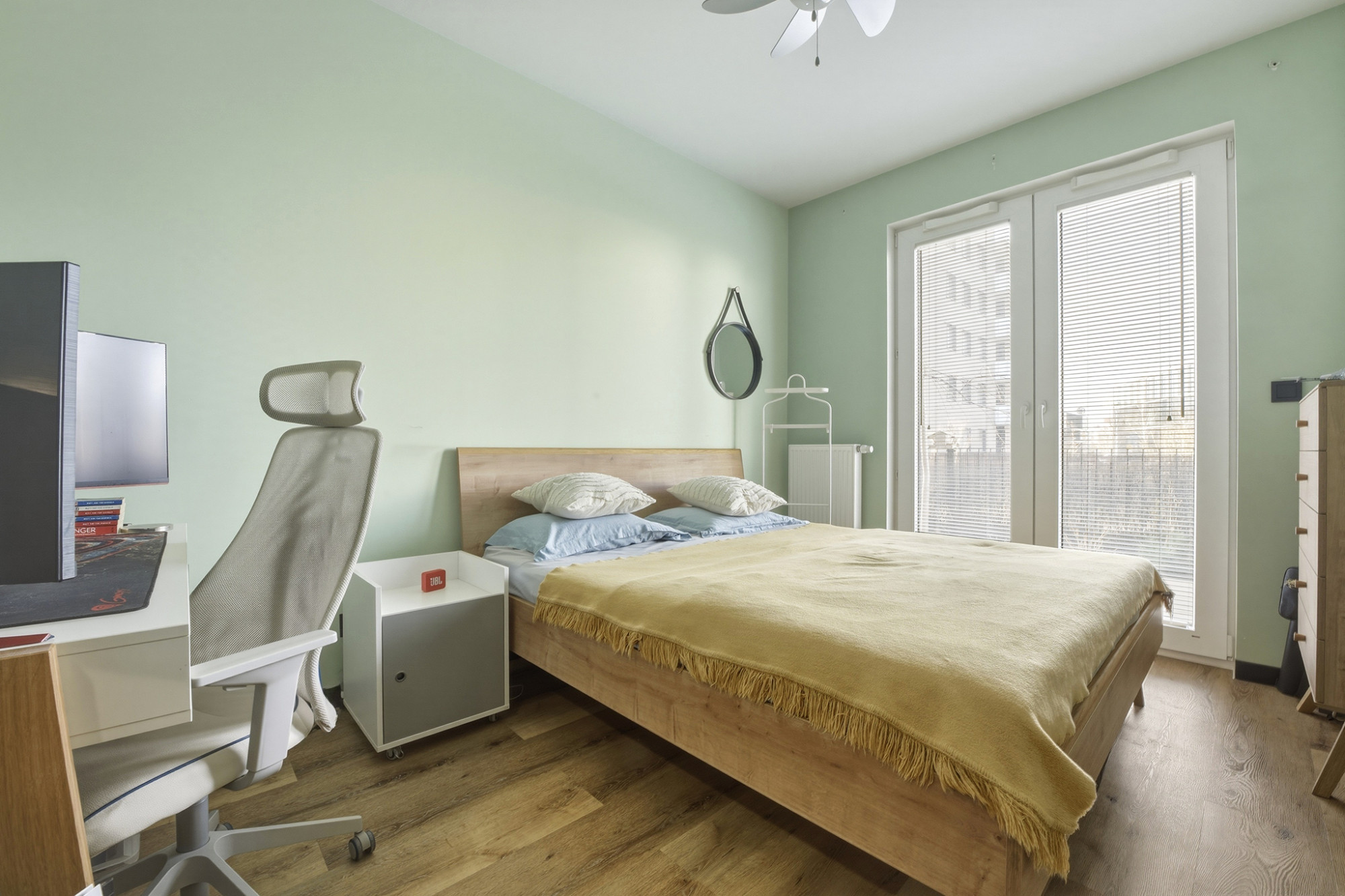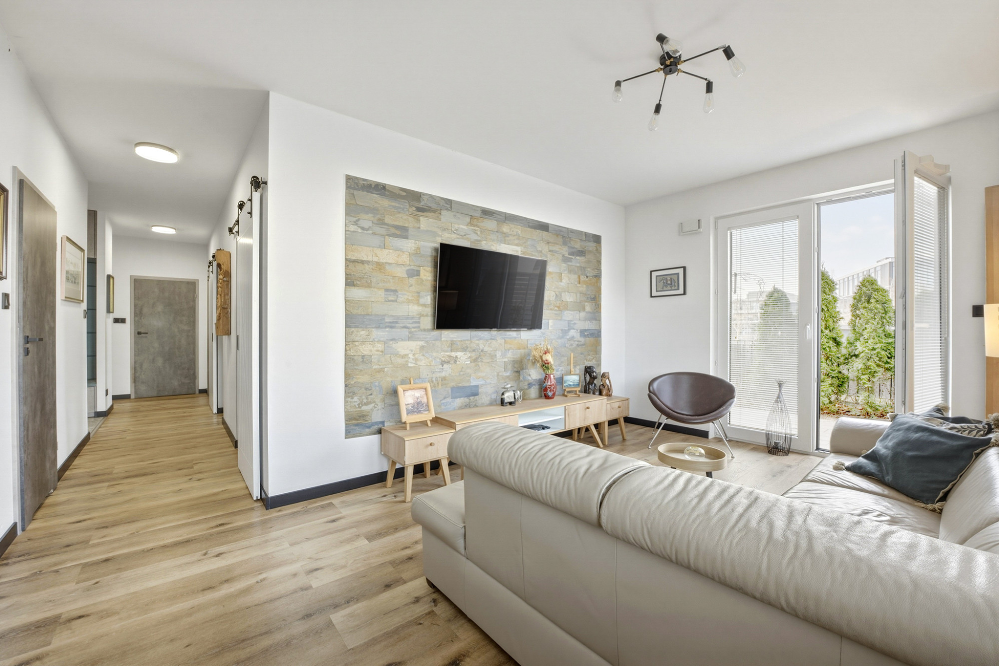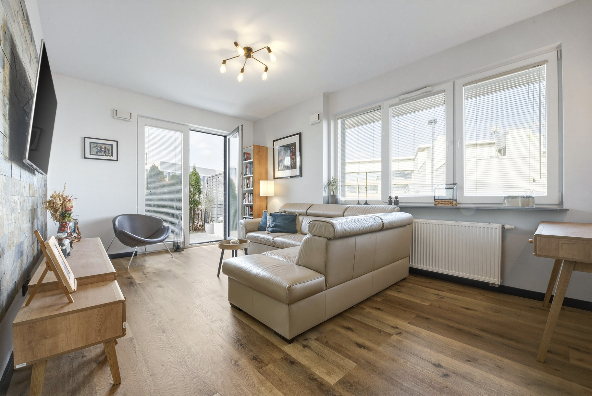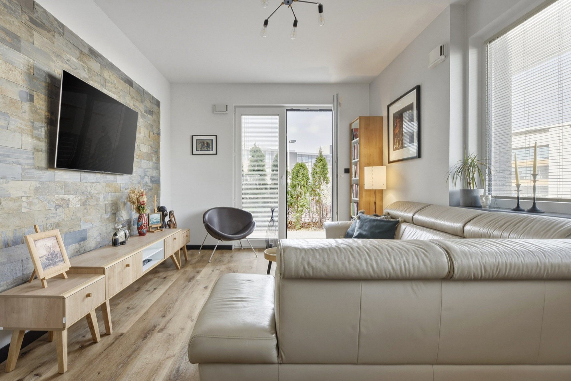 This 83.16 m² apartment is located on the ground floor of a four-story building constructed in 2021. The interior has been designed with functionality in mind, ensuring the comfort of everyday life for both families and those working from home. The abundance of natural light is also a huge advantage.