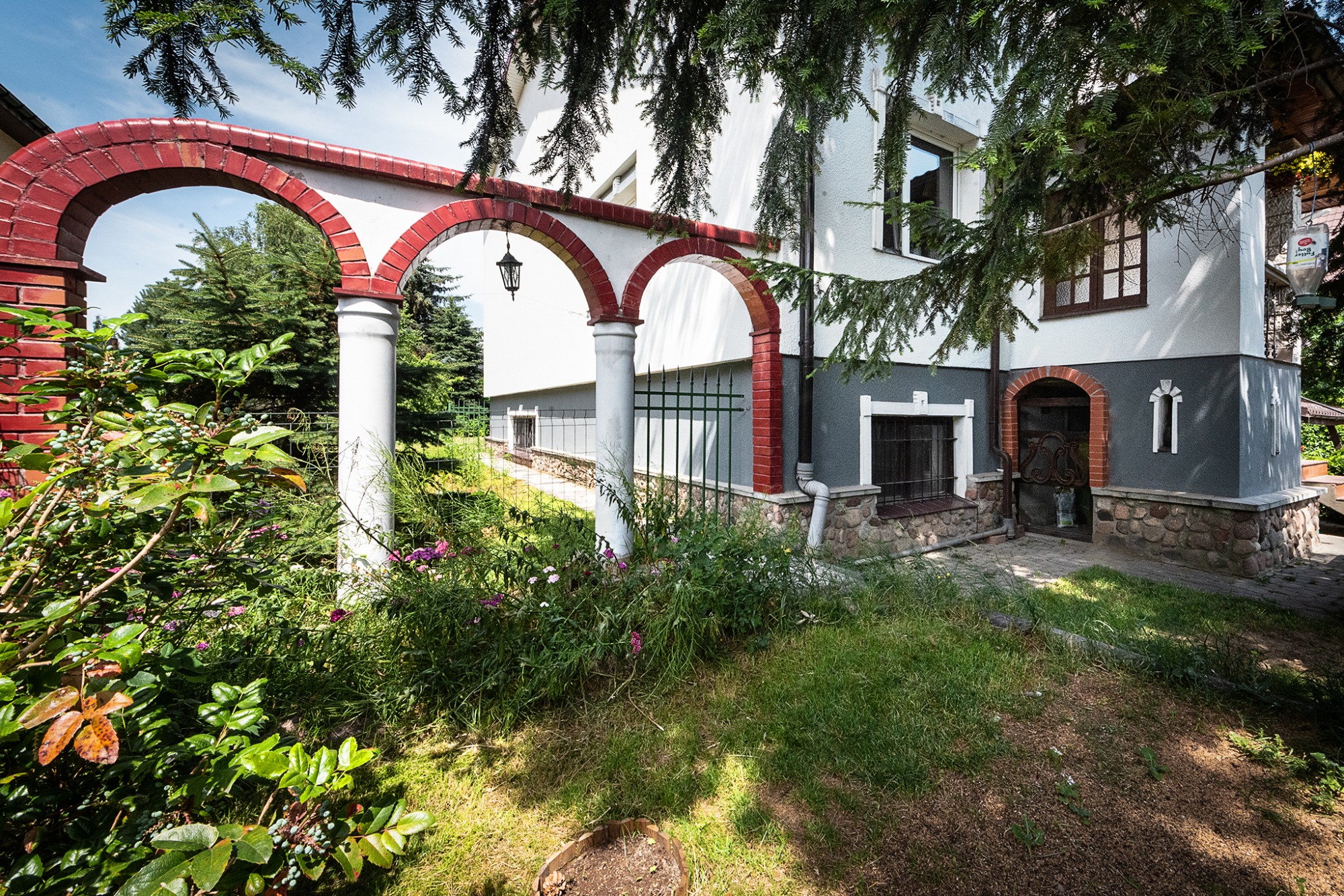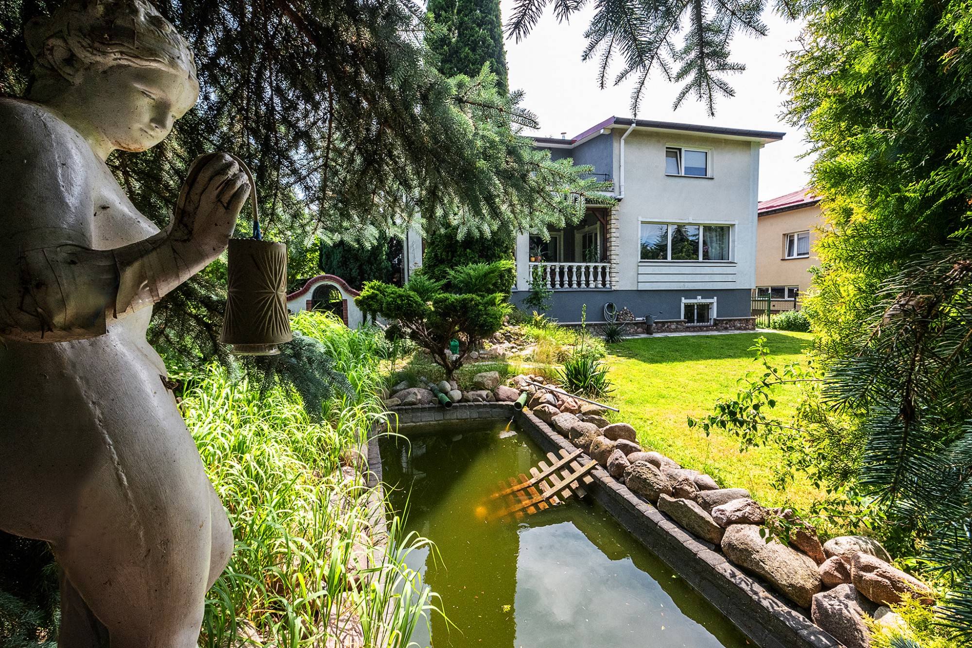 Zapraszam na prezentację tej wyjątkowej nieruchomości! Avenue Estate presents a Countryside style house with a beautifully landscaped and spacious garden. The property is located in a quiet and well-connected part of Warsaw. *** Only 5 minutes to the metro station. The line opens in 2026 *** Advantages • 2 terraces on the ground floor and upstairs • A phenomenal garden with a pond and beautiful rockeries • Stone ornamental balustrades • Greek colonnade in the garden • Floors: tiles with mosaic • An atmospheric fireplace made of natural stone • Stucco • Old Polish ornamental decorative elements Property The presented property is an unusual building with an area of 404 m2 located on a plot of 908 m2 with a beautifully designed and maintained large garden. Full silence, birds singing and an undisturbed view space - both from the plot and the terrace. The house is built of natural, double brick, perfectly insulated with double polystyrene. There is a metal tile on the roof. PVC windows. The building has all utilities: electricity, city water, gas, sewage. Room layout The house is 3 storeys high: 1.Its main part is the high ground floor: spacious living room with dining room / 38 m2 /, kitchen, 1 representative bedroom / 30 m2 /, room currently used as an office / 11 m2 /, dressing room, bathroom, toilet and a terrace of 20 m2 / 2. First floor is divided into two private zones, which include: • First zone: 2 representative bedroom with a bathing room / 40m2 / • Second zone with 3 bedrooms and a bathroom. 3. The ground floor Utility ground floor with two large recreational rooms / 40m2 / and / 30m2 /, a carpentry workshop / 18m2 /, utility rooms and a garage / 29m2 /. The property has a total of 7 bedrooms, including two representative rooms with an area of 30 m2 and 40 m2, 3 bathrooms, kitchen, spacious living room with dining room / 38 m2/, 2 wardrobes, practical pantry. The spacious living room / 60 m2 / leads to the green garden. Location Location is an extraordinary advantage of the house. The property is located in an area that provides a sense of privacy, peace and uninterrupted communing with nature, while remaining only 25 minutes from the center of Warsaw. There are all amenities in the area: CH Wola Park, CH Blue City, Park Górczewska, Shopping Center Galeria Mokotów, Water Park Moczydło. The Bemowo airport and the Chopin airport are nearby. - 4.6 km to the Metro Bemowo station (5 minutes by car) - 1,7 km to the Metro Chrzanów station (opening in 2026) Additional information