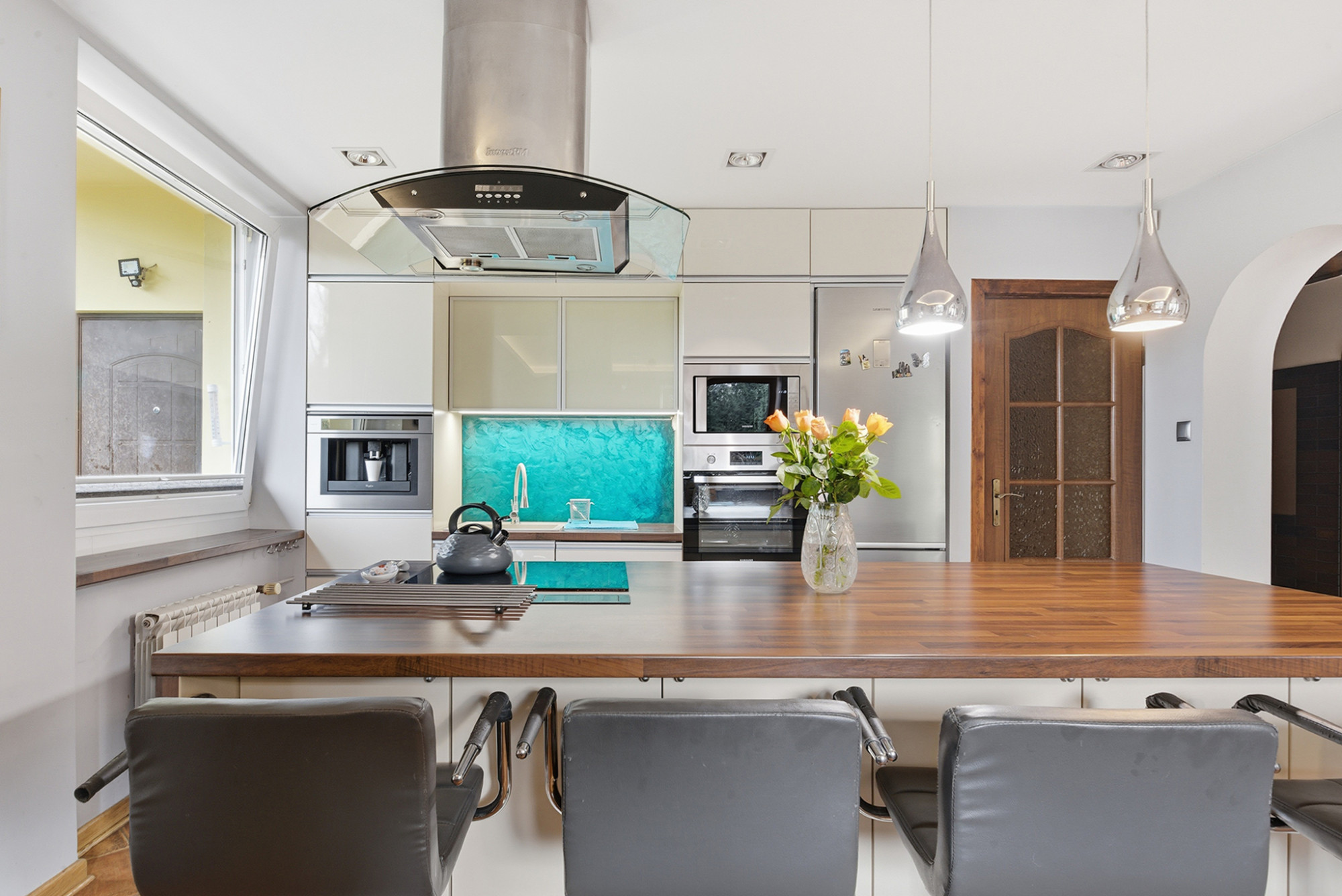 Wnętrza, odświeżone w 2018 roku - malowanie i nowa kuchnia z wyspą - zachwycają funkcjonalnością i elegancją. Ośmiopokojowy układ obejmuje trzy łazienki i trzy toalety, przestronny salon z kominkiem oraz prywatne strefy sypialniane. Każdy pokój emanuje spokojem i jasnością, a zabudowane balkony oraz taras sypialni master wzmacniają poczucie prywatności i harmonii.