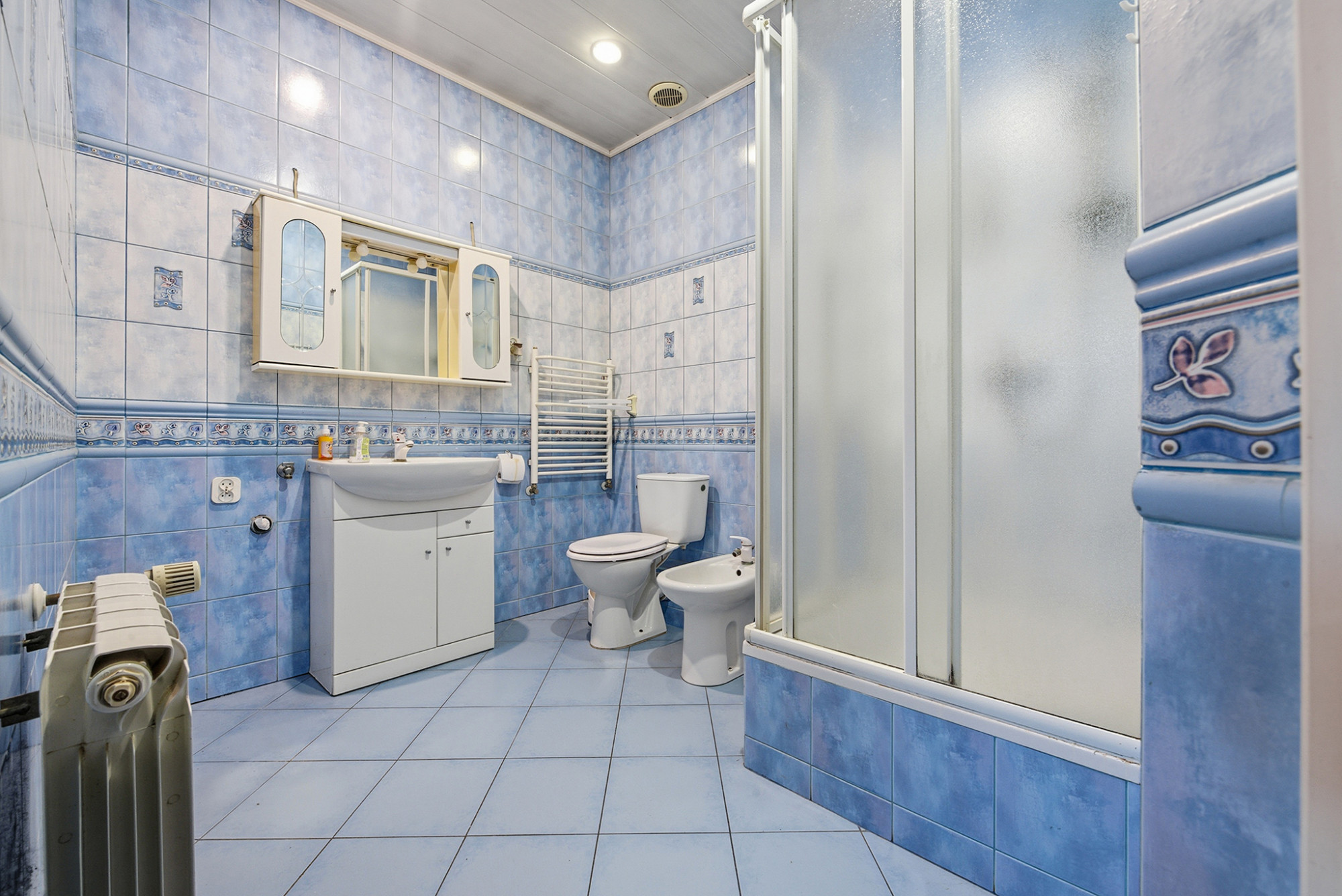 The interiors, refreshed in 2018 with new paint and a modern kitchen with an island, combine functionality with elegance. The eight-room layout includes three bathrooms, three toilets, a spacious living room with a fireplace, and private bedroom areas. Each room exudes calm and light, while enclosed balconies and the master bedroom terrace enhance privacy and harmony.