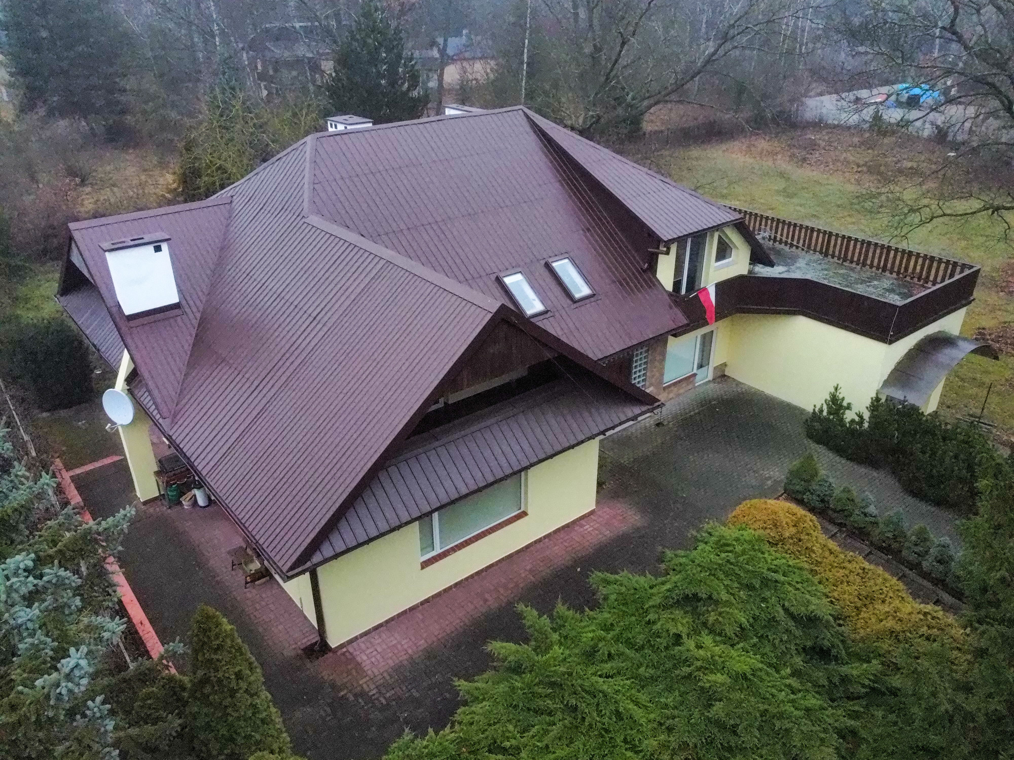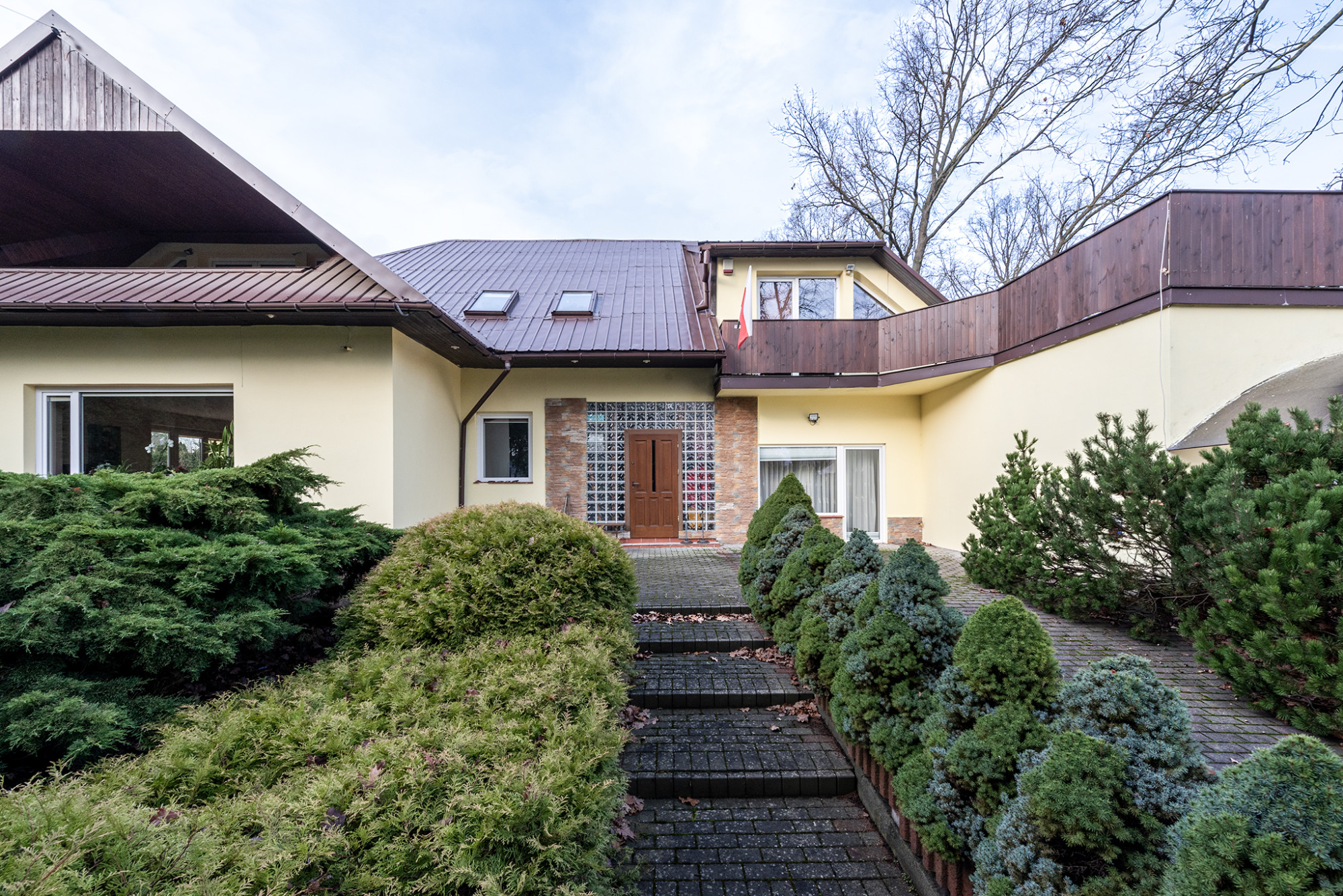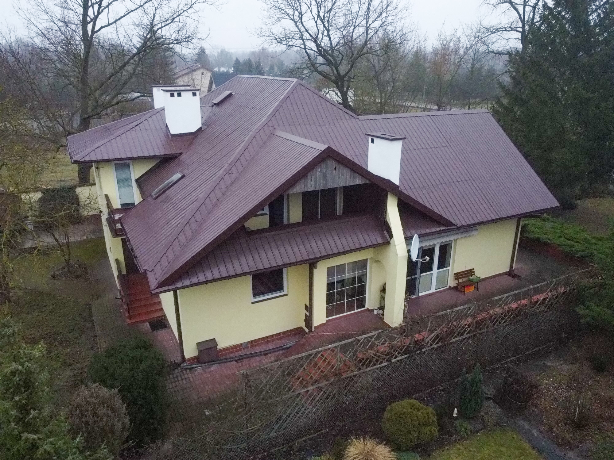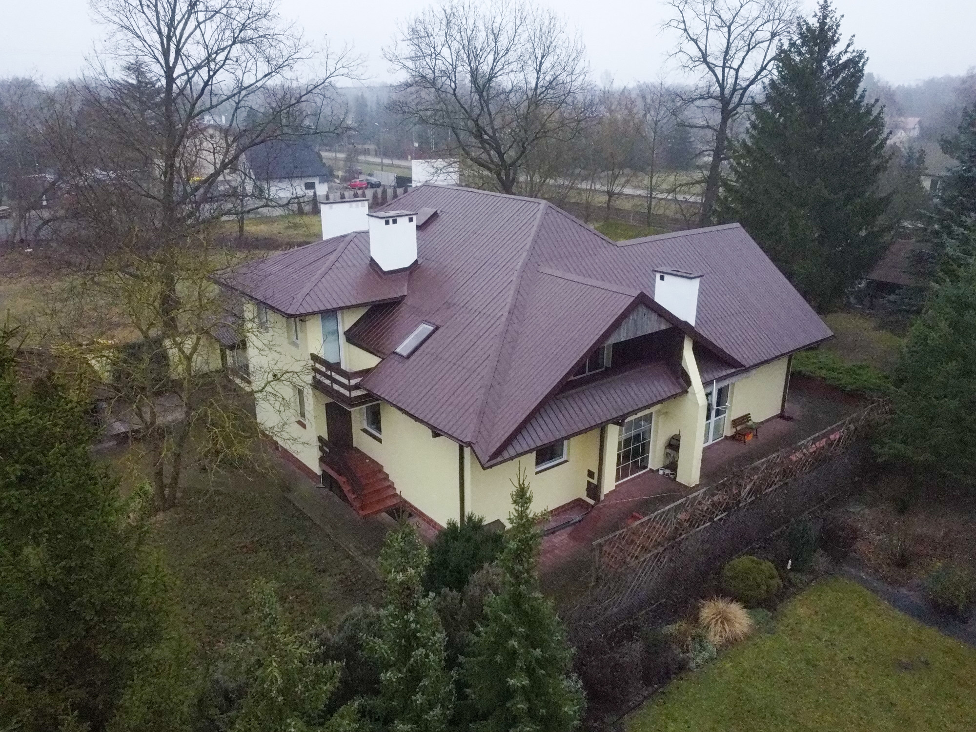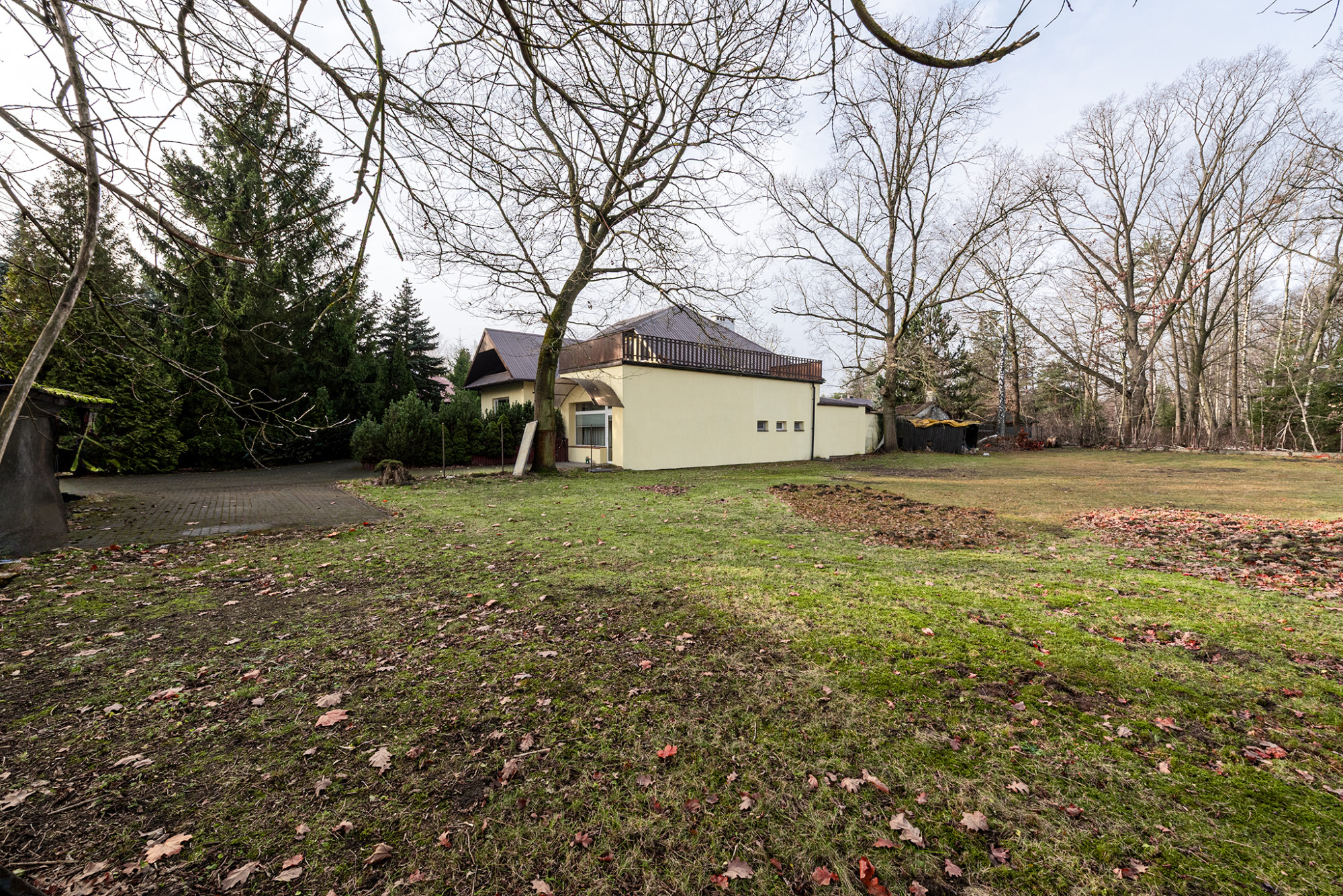 HIGHLIGHTS • Spacious terrace off the master bedroom with a private walk-in closet - a private retreat with exceptional garden views • Enclosed balconies in other rooms - ensuring privacy and security • A home built “for oneself” - classic family style seamlessly integrated into green surroundings • Private garden with a fire pit and beautiful landscaping • Double carport with additional parking space • Fireplace and gas underfloor heating - cozy ambiance year-round • Opportunity to purchase an adjacent 3,100 m² plot for PLN 1,085,000 • Additional residential building - a versatile space for your needs