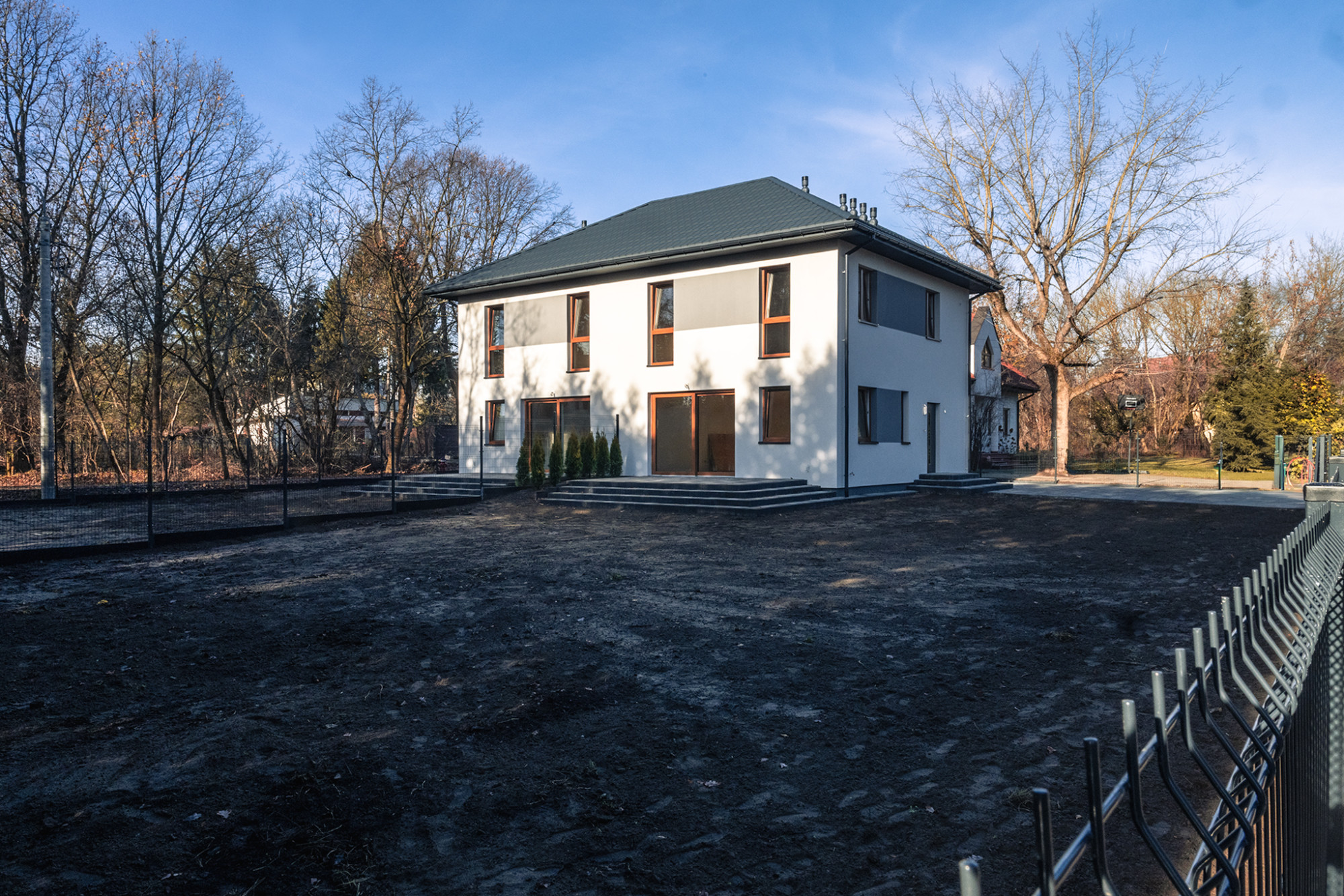 Top Lokalizacja/ Standard!/ Bez PCC i ProwizjiAvenue Estate prezentuje na sprzedaż dom w cichej i zielonej części rezydencjonalnego Piaseczna. Budynek oddany do użytkowania.***** Bez Prowizji / Bez Podatku PCC ATUTY - Wszystkie media miejskie: kanalizacja, światłowód, prąd, woda - Willowa, spokojna okolica domów jednorodzinnych - Bardzo dobre naturalne nasłonecznienie - Funkcjonalne tarasy z piękną ekspozycją - Wejście do domów z 2 przeciwległych stron - Naturalny żywopłot o imponującej wysokości - Bardzo wysoka jakość wykonania domu (standard oraz specyfikacja poniżej) STANDARD - Ogrzewanie podłogowe na całej powierzchni domu - Pompa Ciepła - Kostka brukowa BRUK-BET na podjeździe, chodniku oraz tarasie - Okna przesuwne HS - Brak jakichkolwiek skosów na piętrze - Podwójna ściana pomiędzy domami - Wylewki anhydrytowe - Ogrodzenie całej posesji - Furtka i brama wjazdowa na posesję aluminiowa z pełną automatyką - Parapety termiczne Rozkład pomieszczeń: PARTER 1. Przedsionek - 3,98 m2 2. Korytarz - 4,30 m2 3. Salon z aneksem kuchennym - 32,30 m2 4. Łazienka - 3,80 m2 5. Pom. gospodarcze - 3,23 m2 PIĘTRO 6. Korytarz - 8,19 m2 7. Sypialnia nr 1 - 11,56 m2 8. Sypialnia nr 2 - 9,21 m2 9. Sypialnia nr 3 - 8,02 m2 10. Łazienka - 5,79 m2 11. Garderoba - 3,33 m2 Powierzchnia całkowita: 97 m2 Technologia i konstrukcja: * Ściany budynku: Beton komórkowy 24 cm * Podwójna ściana pomiędzy lokalami po łącznej grubości 50 cm, ściany działowe z betonu komórkowego 12 cm * Izolacja ścian: Styropian grafitowy 15cm, tynk silikonowy * Izolacja podłogi na gruncie Styropian 15 cm * Izolacja dachu: Wełna celulozowa 35cm * Strop: Monolityczny * Dach: Blachodachówka płaska Blachotrapez, rynny pcv * Kocioł: Pompa ciepła Vaillant aroTHERM Split Plus 7 kW z zasobnikiem 200l * Okna : Trzyszybowe z ciepłą ramką Salamander, parapety termiczne (niwelują mostki termiczne i wygłuszają padający deszcz) * Okno tarasowe : Przesuwne HS * Ogrzewanie podłogowe: w całym budynku, posadzki anhydrytowe * Instalacje: wodna, kanalizacyjna, elektryczna, wyprowadzone przewody pod fotowoltaikę, instalacja teletechniczna na parterze w salonie oraz w głównej sypialni na piętrze, instalacja alarmowa * Drzwi wejściowe: WIKĘD, ościeżnica Thermo LOKALIZACJA Dom położony w cichej i spokojnej enklawie, pośród zabudowy jednorodzinnej i zieleni. W pobliżu Parki (min. Park Miejski Książąt czy Górki Szymona), liczne Pomniki Przyrody oraz trasy do spacerowania, biegania czy jazdy na rowerze. W promieniu około 1 km znajdziemy również między innymi: klub tenisowy, ogólnodostępne boiska do piłki nożnej, tory do biegania, stadion miejski, lodowisko, spływ kajakowy i wiele innych atrakcji w okolicy. W odległości 700 metrów pieszo znajdziemy cieszącą się bardzo dobrą opinię szkołę przy ulicy Świętojańskiej w Piaseczno. Poza nią, w bliskim otoczeniu znajdziemy wiele innych szkół (w tym językowych), liceów itp. Szkoła przy Świętojańskiej - 1,5 min samochodem, 9 min pieszo PKP Piaseczno - 1.5 km SZCZEGÓŁY OFERTY