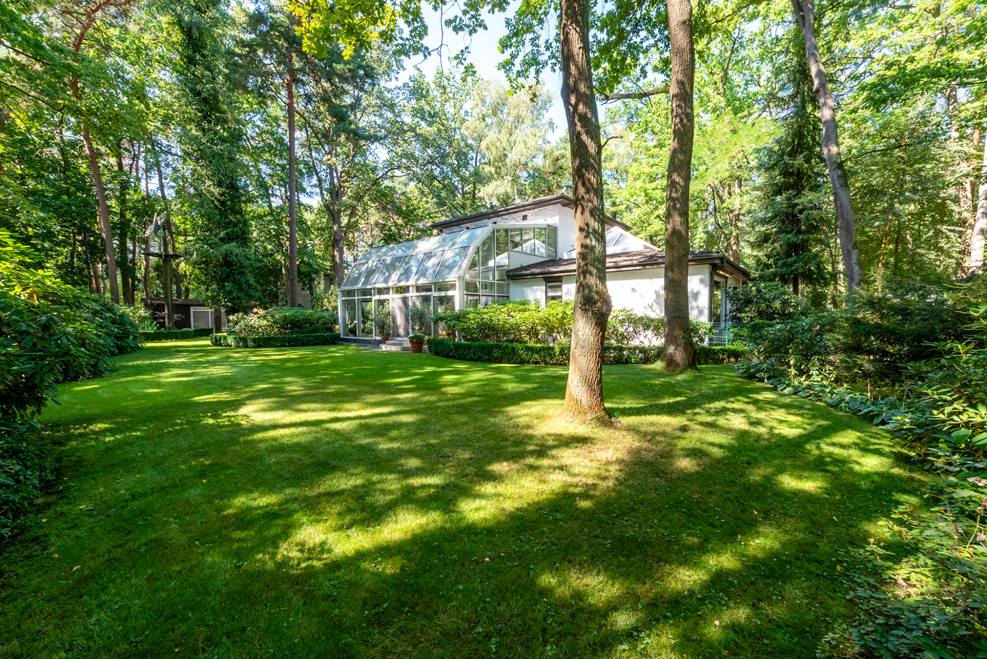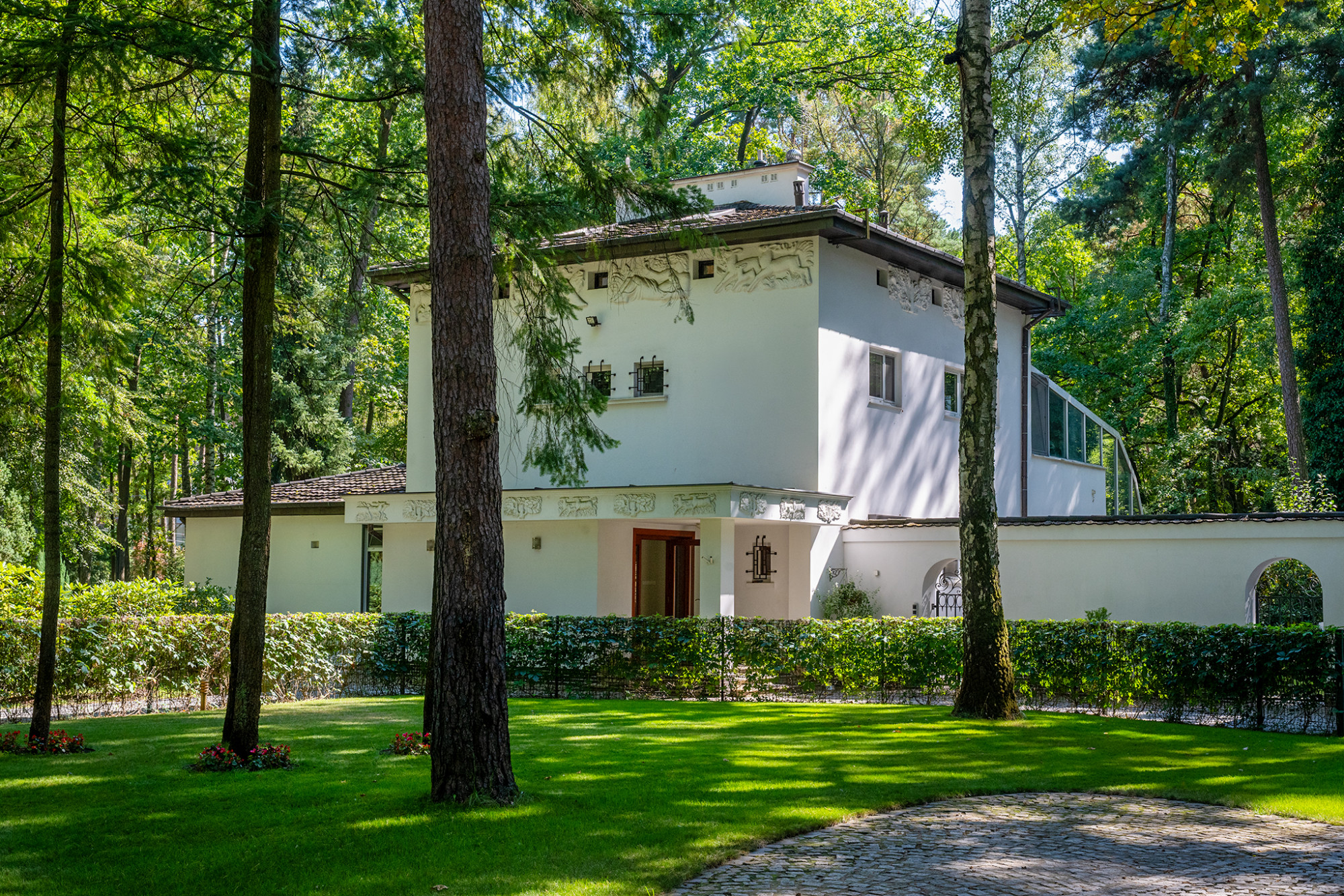 To unikatowa w swoim charakterze nieruchomość - zalesiona, rozległa działka narożna jakich nie znajdziemy już w okolicy, daje poczucie absolutnej prywatności i spokoju. Do tego niepowtarzalny, przedwojenny dom zanurzony wśród zieleni - całość tworzy wyjątkowy klimat tego miejsca. W 2001 roku dom został gruntownie zmodernizowany i rozbudowany przez aktualnych właścicieli - dobudowano lewe skrzydło na parterze, hol wejściowy oraz ogród zimowy, powiększając powierzchnię użytkową o ponad 130 m2. Rozkład pomieszczeń: Parter (237 m2):