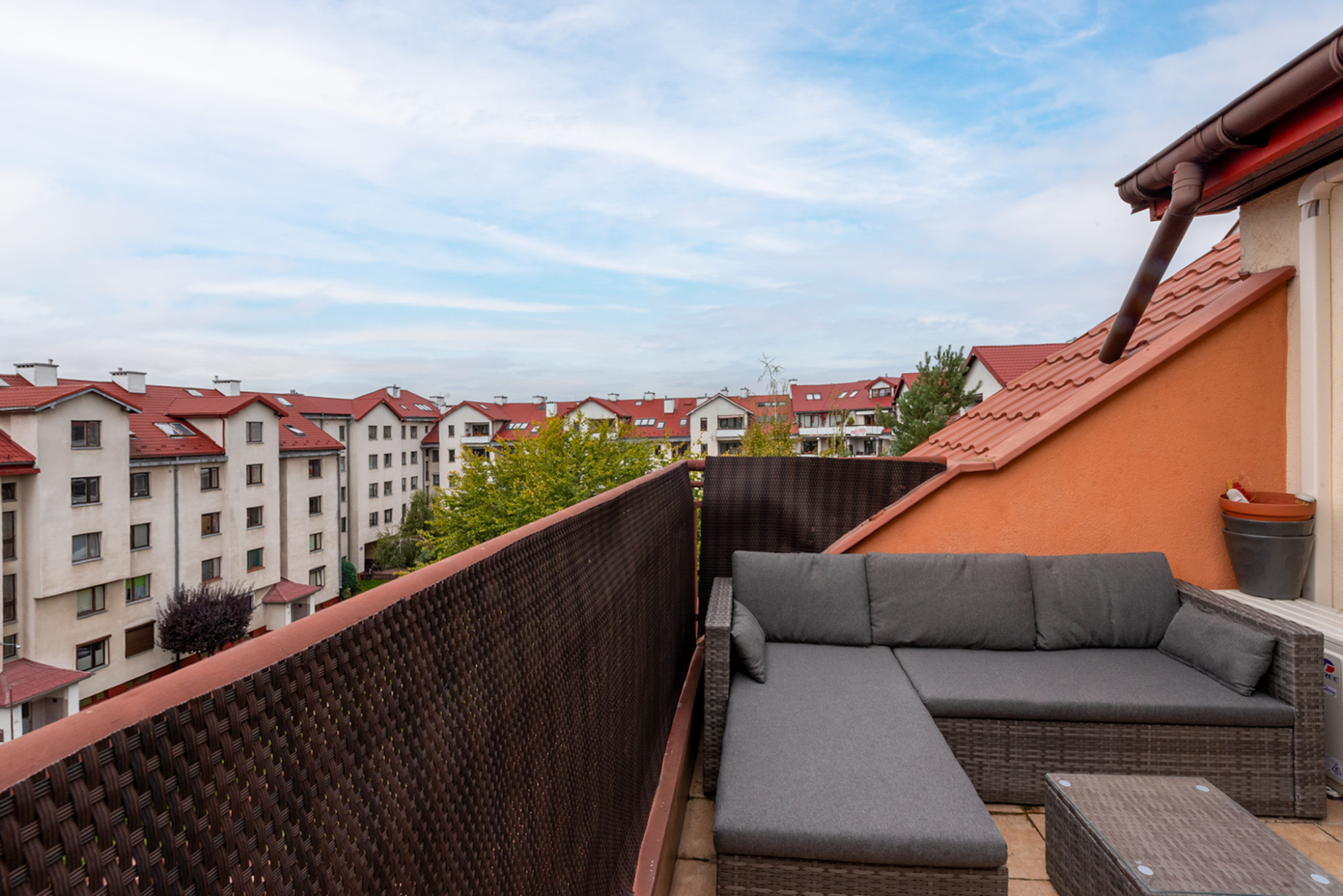Atuty - Dwustronny układ - Prywatny taras o powierzchni 9 m² - Przestronna antresola (15 m²) idealna na sypialnię lub biuro - Spokojna i kameralna zabudowa - Komórka lokatorska w cenie - Klimatyzacja