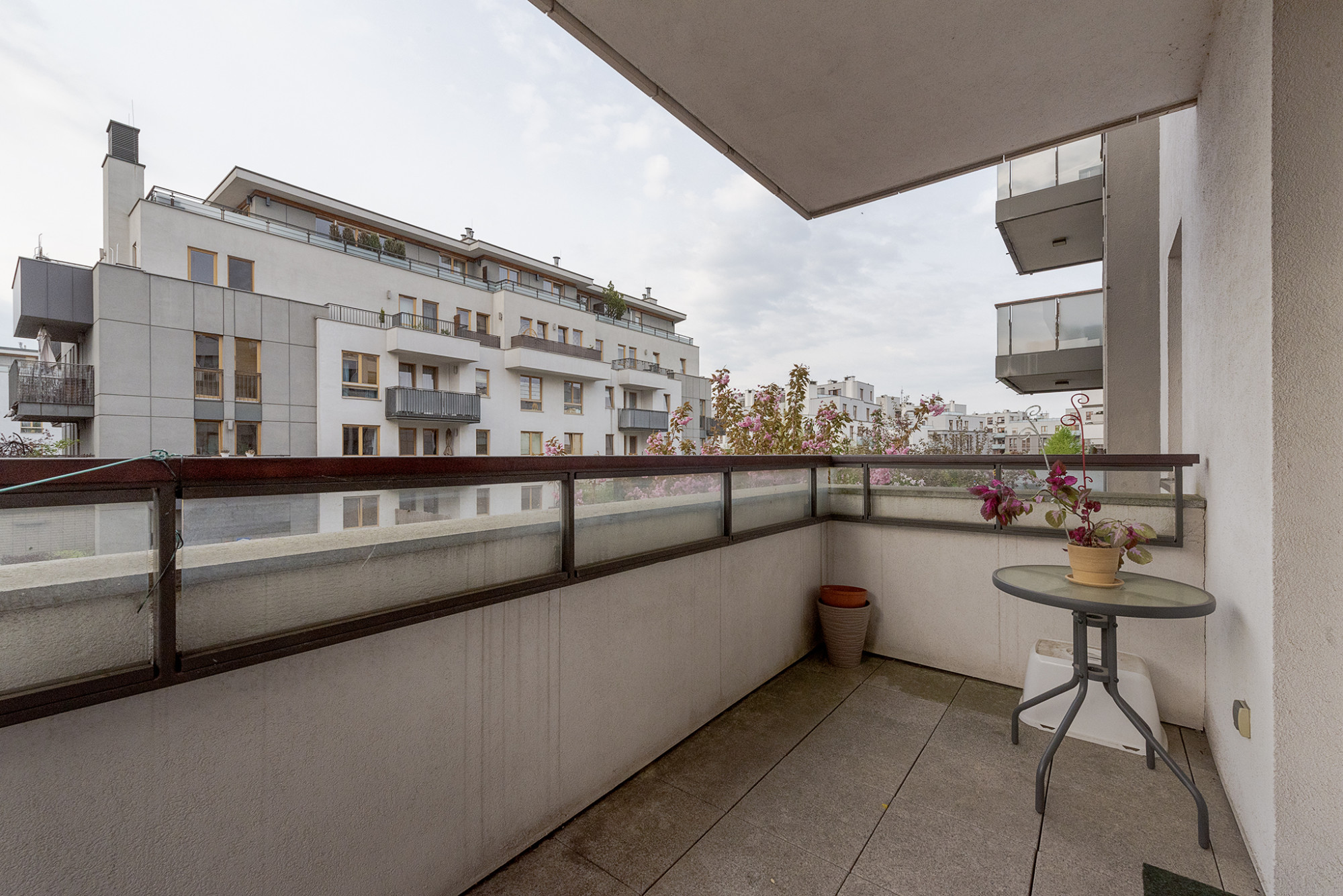 PROPERTY• prestigious, desirable location • view of the beautifully landscaped patio • big balcony • two-sided, corner apartment • exposure to 4 sides of the world • very favorable layout of the apartment, leaving many arrangement possibilities • two independent garage spaces belonging to the apartment • large, ventilated storage room located on the 4th floor of the building /independent additional room/ The apartment is located on the 1st floor of a 4-story building from 2012, in a guarded housing estate monitored 24 hours a day, and has an internal, fenced patio with a playground and beautifully landscaped greenery, perfect for short walks. The apartment is very quiet, bright and sunny, the windows are located in four directions: north, south, east, west. The apartment has been finished with high-quality materials. The area of the apartment was designed and used in a very precise way. The living room, bedrooms and office have bamboo floors, and terracotta floors in the kitchen, bathroom, hallway and dressing room. The apartment consists of: 1. Living area, which consists of a spacious living room with access to the balcony, kitchen, toilet and dressing room. The kitchen is fully equipped with high-class household appliances: fridge-freezer /Samsung/, induction hob /Bosch/ oven, steam oven, dishwasher/Siemens/. A large number of windows in the living room provide perfect illumination of the living room and enhance the sense of space. 2. Private zone, which consists of two bedrooms, an office and a bathroom /with a bathtub, a shower, and a Bosch washing machine/ ROOM LAYOUT • living room 24.5 m2 • kitchen 8.5 m2 • bedroom1 13 m2 • bedroom2 10 m2 • office 6 m2 • bathroom 5 m2 • dressing room 3.1 m2 • toilet 2 m2 • hall 10.5 m2 • corridor 2 m2 • balcony 6.3 m2 LOCATION The apartment is located in a quiet, peaceful housing estate in Miasteczko Wilanów. The location doesn't need much introduction. Excellent infrastructure. In close proximity, prestigious international schools: WB Polish-German School of Encounters and Dialogue, British Primary School of Wilanów, High School Academeya, American School of Warsaw, International European School, primary schools, kindergartens and nurseries. There is a bus stop at your fingertips with convenient connections to the center and the metro station. In the immediate vicinity there are numerous restaurants, shops, cafes, service points and drugstores. On the neighboring street there is a large playground and Orlik Wilanów Warszawa. Well-prepared, numerous bicycle paths lead to the Culture Park in Powsin, a few kilometers away, and to beautiful, wild beaches on the Vistula River. The newly opened Southern Bypass enables a quick connection to Ursynów and the metro in Kabaty. In the near future, it is planned to complete the construction of the newest tram line, which will connect Wilanów with the center of Warsaw.