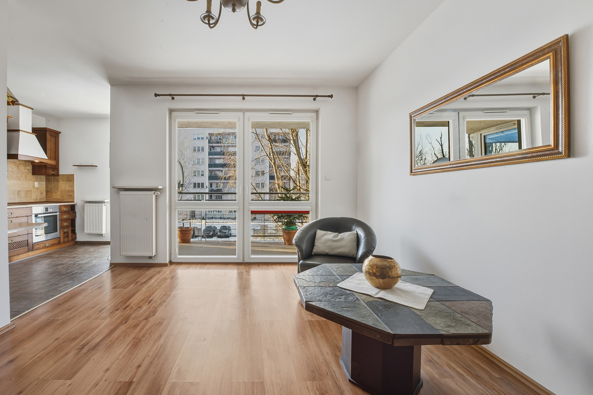Atrakcyjne, funkcjonalne, 2-pok./BemowoZ przyjemnością oferujemy przestronne, zadbane i funkcjonalne, 2-pokojowe mieszkanie o pow. 57,49 m2, z dużym balkonem (loggia) na warszawskim BEMOWIE - ok 800 m od stacji Metra "Ratusz Bemowo".ATUTY: • lokalizacja - spokojna, dobrze skomunikowana ulica, • funkcjonalny rozkład pomieszczeń • duże, pojemne szafy w zabudowie w przedpokoju i sypialni • mieszkanie zadbane, gotowe do wprowadzenia NIERUCHOMOŚĆ: Mieszkanie usytuowane na 1 piętrze 7-piętrowego apartamentowca z 2005 r. posadowionego przy ul. Gen. Pełczyńskiego. (Bemowo).Budynek wykończony w dobrym standardzie, zadbany i bezpieczny, z windą i domofonem. Lokal jest bardzo jasny dzięki dużym oknom w salonie - ekspozycja Zach. Wszystkie okna wyposażone w wewnętrzne rolety przeciwsłoneczne, a okno w sypialni i w kuchni dodatkowo w rolety zewnętrzne. Funkcjonalnie rozplanowana przestrzeń zapewnia domownikom wygodę i prywatność. Kuchnia w pełni umeblowana i wyposażona w sprzęt AGD marki Bosch. Mieszkanie użytkowane przez właścicieli okazjonalnie - niektóre urządzenia (np. piekarnik) prawie nie używane. W hallu i przedpokoju pojemne szafy w zabudowie, na wymiar. ROZKŁAD: