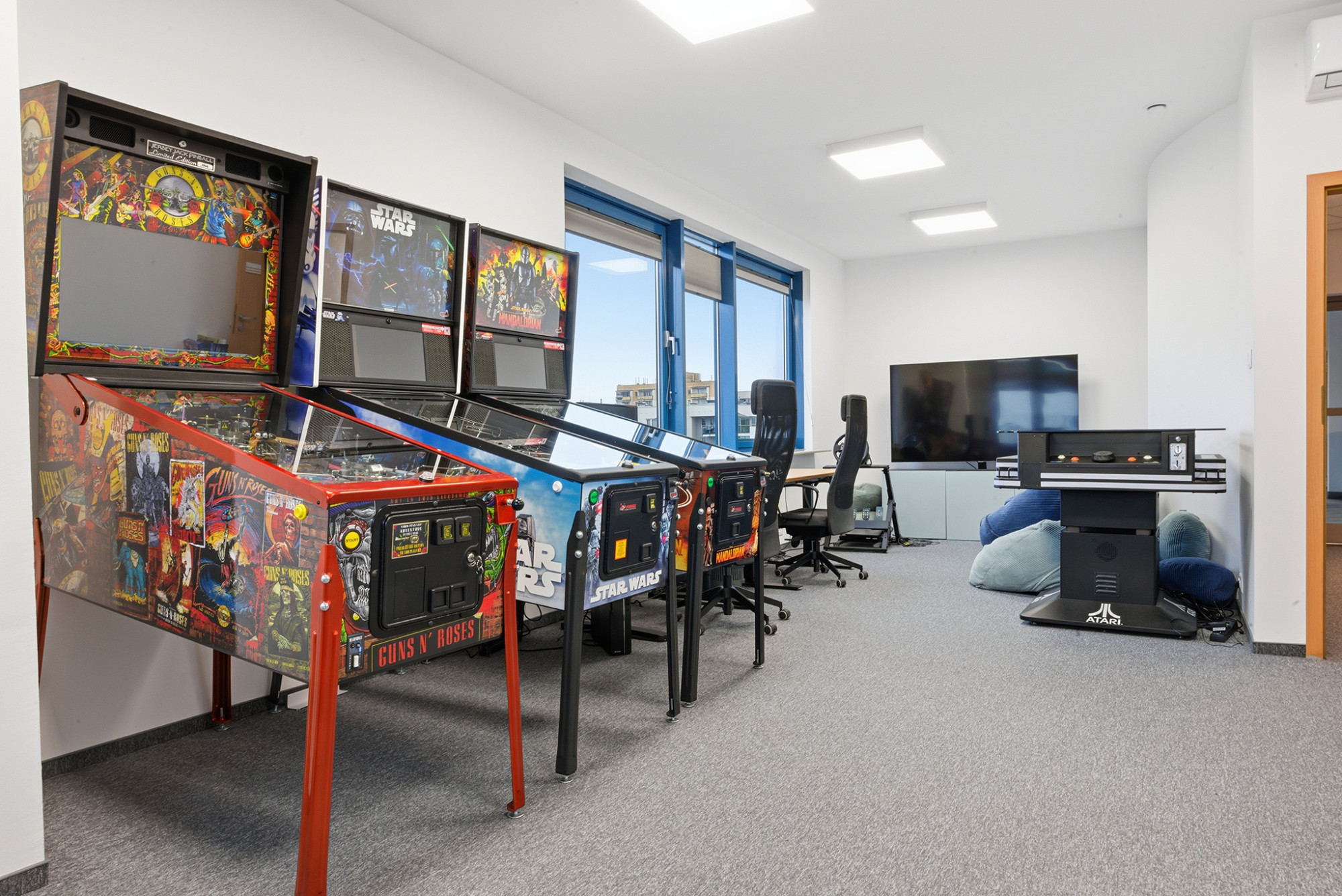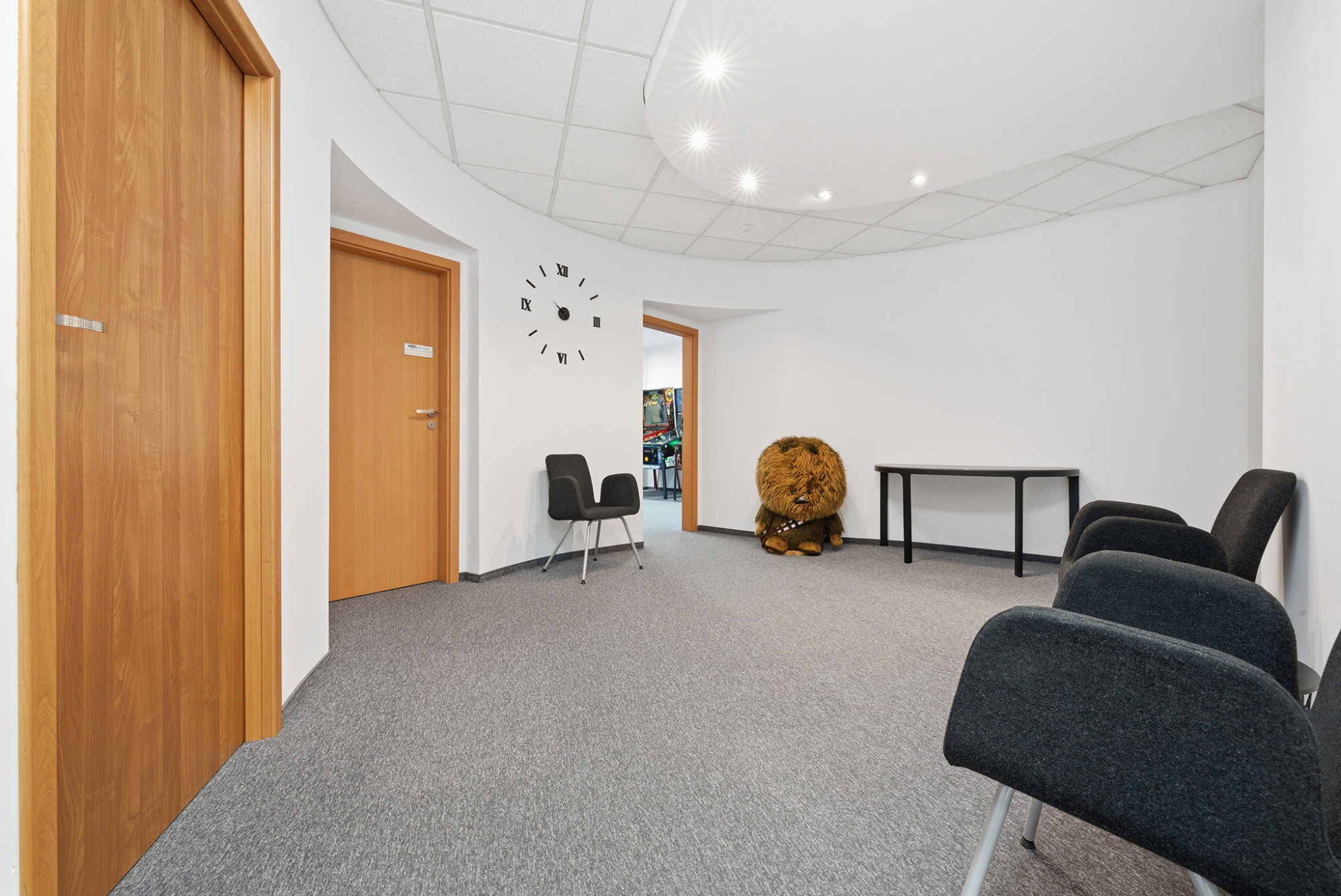 Two separate entrances enable flexible space planning, from executive zones to public areas. The office is additionally equipped with automated and remote door-locking systems as well as remotely controlled air conditioning, enhancing both convenience and security.