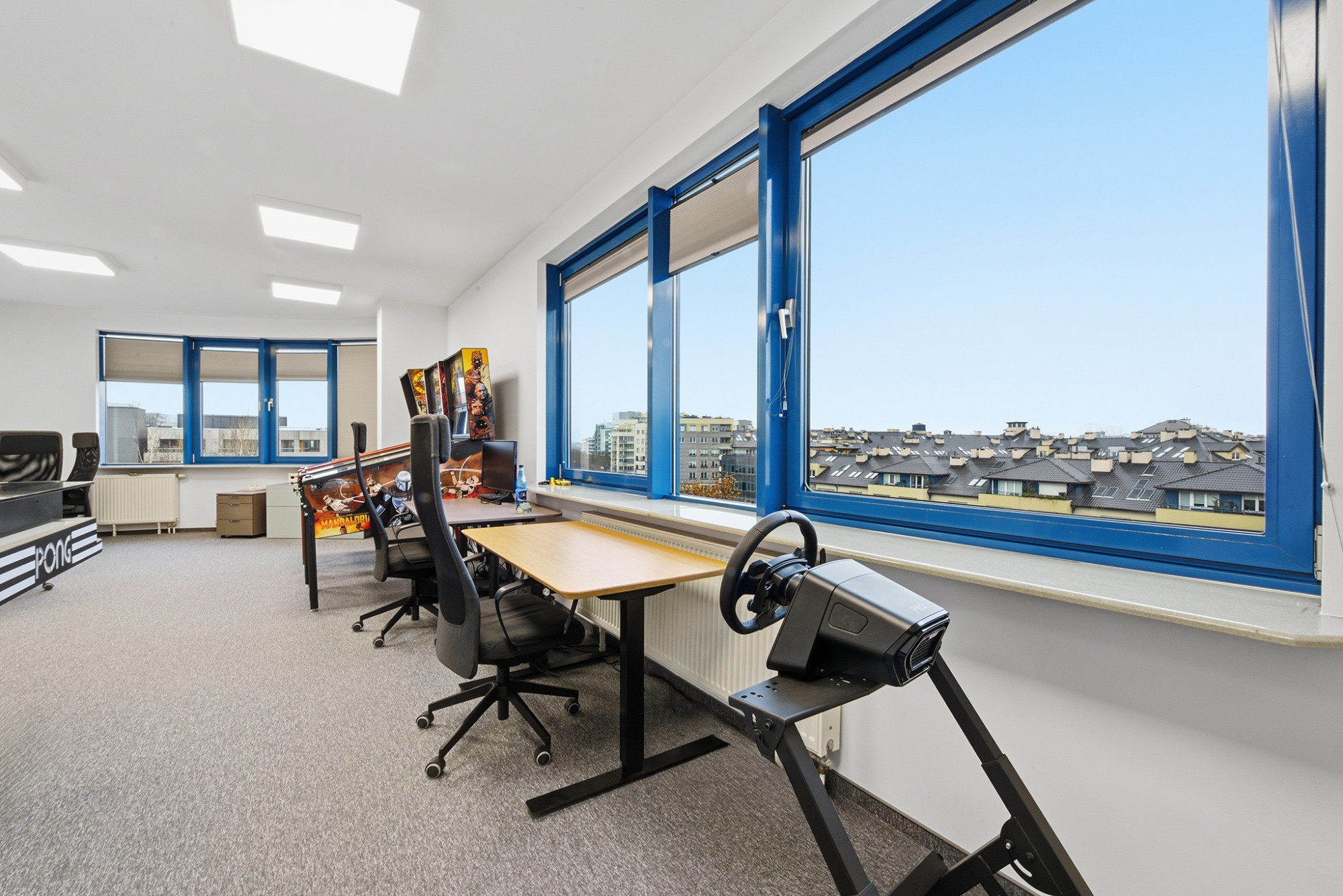 Dwa oddzielne wejścia umożliwiają elastyczne dopasowanie przestrzeni do różnych potrzeb - od stref zarządczych po ogólnodostępne. Lokal wyposażono również w systemy automatycznego i zdalnego zamykania drzwi oraz klimatyzację sterowaną zdalnie, co podnosi poziom bezpieczeństwa i wygody.