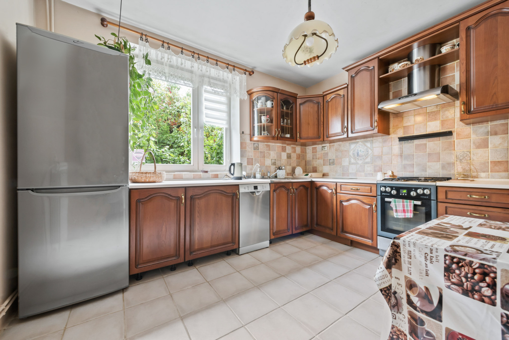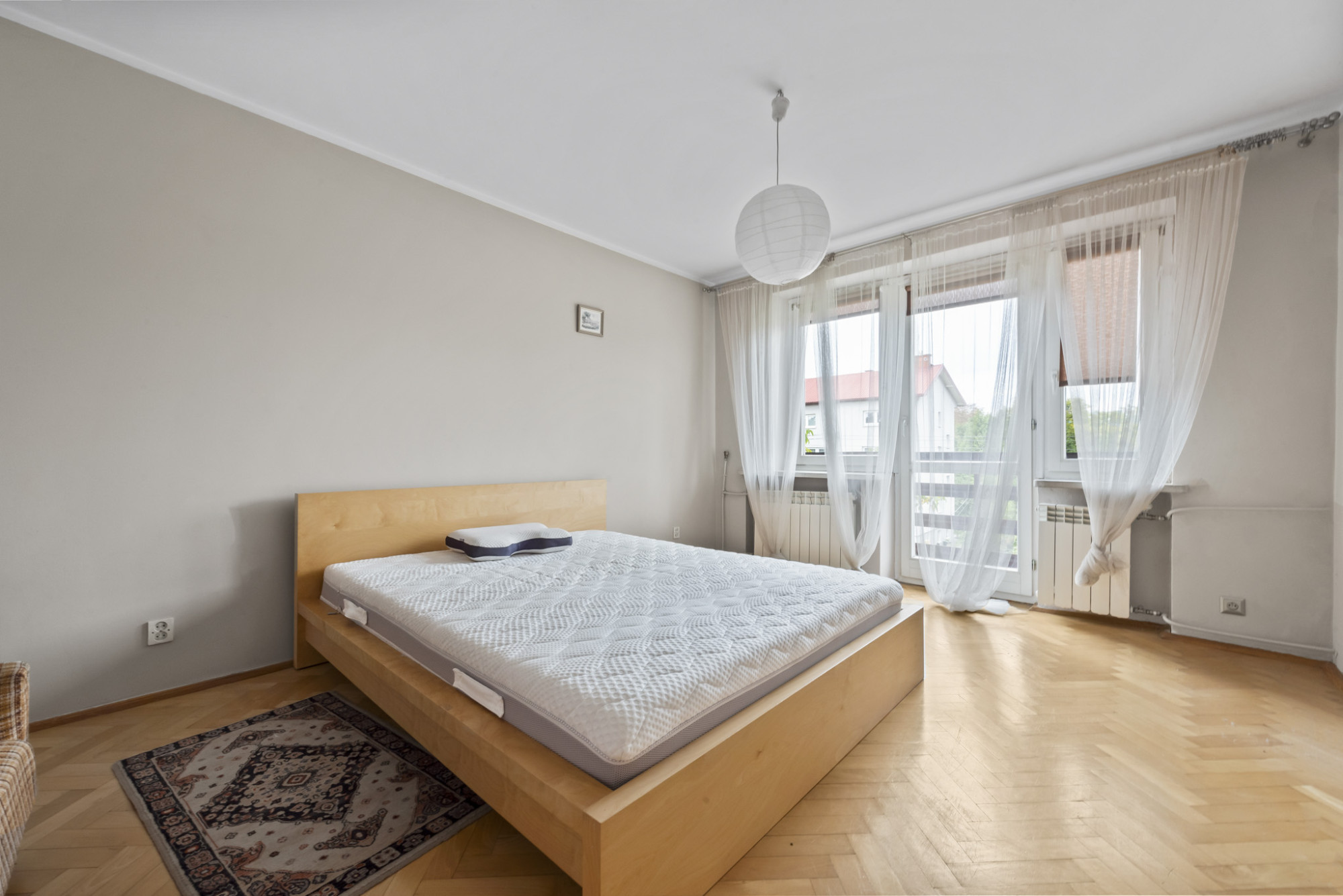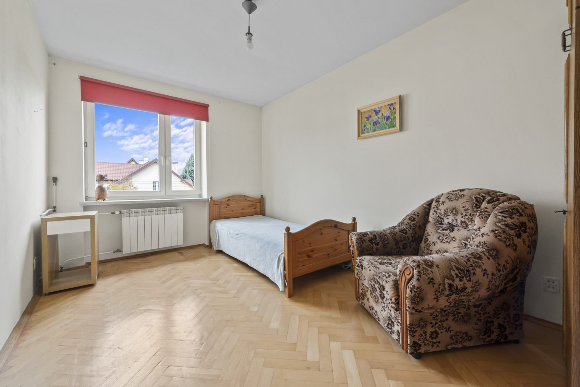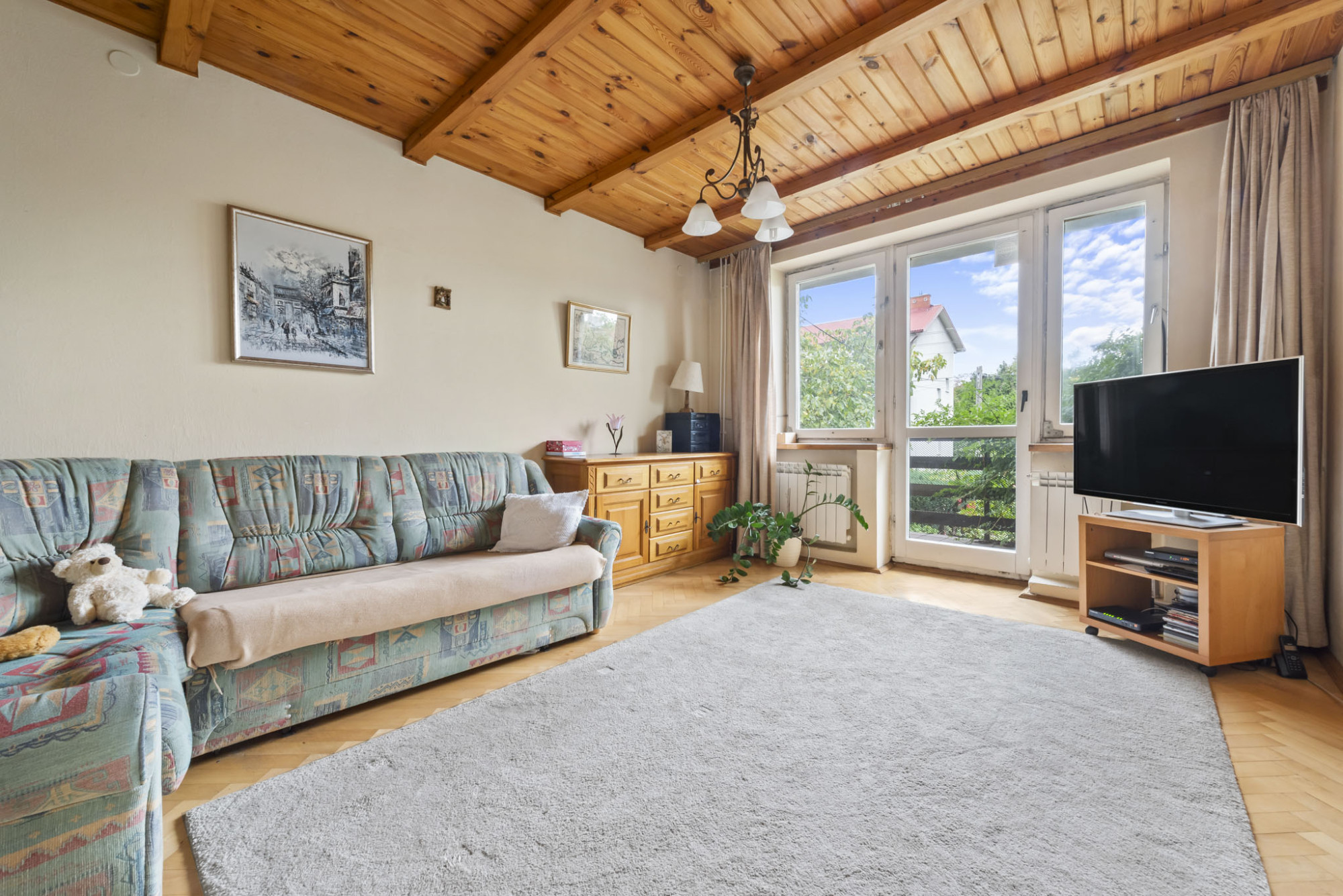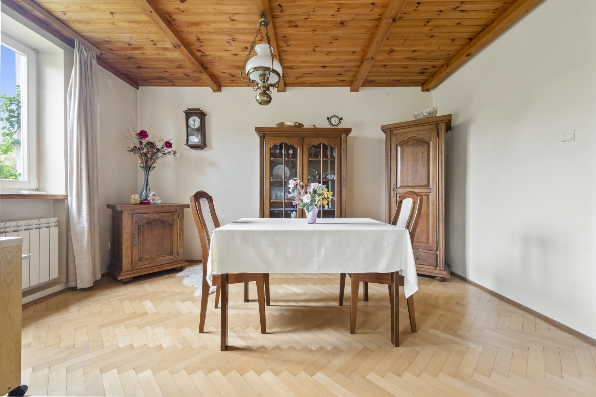 W salonie i jadalni stylowy drewniany sufit - dla optycznego powiększenia i dodania lekkości przestrzeni można go wybielić. Schody drewniane, w pokojach na podłodze parkiet, w kuchni i łazienkach terakota i glazura. Ogrzewanie gazowe - piec oszczędny, dwufunkcyjny Junkers. Wszystkie media, światłowód, instalacja alarmowa. Informacje dodatkowe: W 2016 roku wymieniono instalacje (wod-kan, gazowe) oraz zamontowano nowy piec (Junkers). Wymieniono okna (PVC), poza oknem w salonie. Możliwość zaadaptowania strychu na poddasze użytkowe. Budynek połączony z sąsiednim tylko ścianką frontową, boczne ściany oddzielone. Dom wymaga odświeżenia/remontu - zależnie od potrzeb nabywcy. Pełna własność - KW bez obciążeń LOKALIZACJA: Dom znajduje się w spokojnej, bezpiecznej okolicy domów jednorodzinnych dzielnicy Stare Włochy To dzielnica Warszawy, która cieszy się coraz większą popularnością wśród mieszkańców. Oto kilka powodów, dla których warto rozważyć zamieszkanie w tej okolicy: