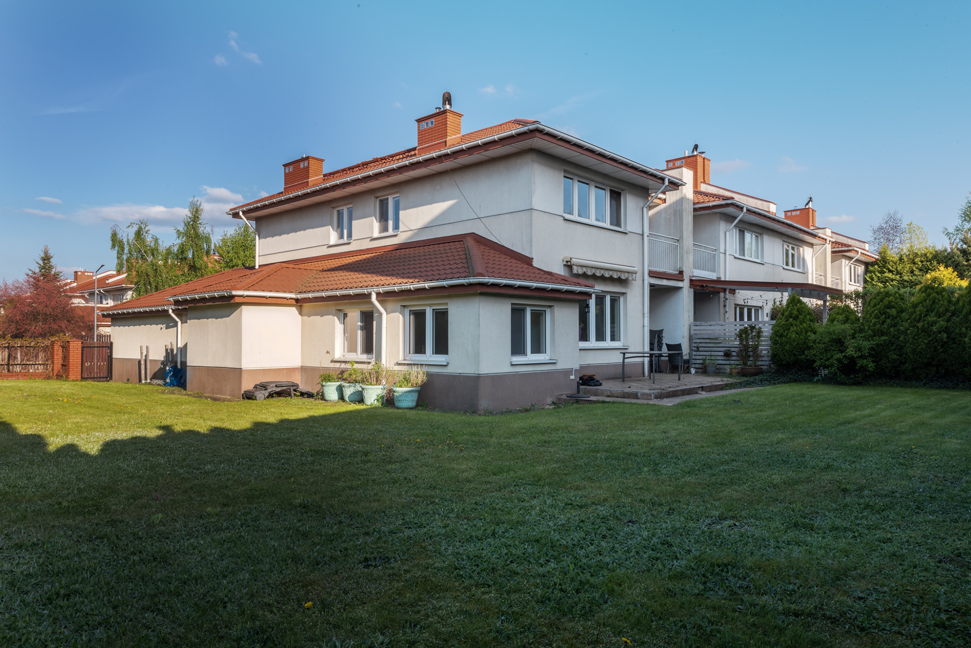 Dom zamknięte osiedle Bielawa, blisko ASWAvenue Estate ma przyjemność zaprezentować dom na sprzedaż w Bielawie, na zamkniętym i chronionym osiedlu, niedaleko od American School of Warsaw. Duża działka i zadbany ogród. Garaż na 2 samochody.ATUTY Dom w świetnej lokalizacji, blisko ASW. Zamknięte i strzeżone osiedle gwarantują bezpieczeństwo. Z dala od zgiełku miasta cisza i spokój na co dzien. Opłaty czynszowe 600 zł/miesięcznie NIERUCHOMOŚĆ Dom w zabudowie szeregowej, skrajny segment. otoczony dużą działką w kształcie litery L. Powierzchnia domu 207m2, działka 750 m2. Wewnątrz domu: Ogrzewanie gazowe, woda i kanalizacja miejska. Ogrzewanie podłogowe w całym domu. Na podłogach gres i parkiet mahoniowy. Liczne szafy zabudowane. Kuchnia w pełni wyposażona, blat z granitu, AGD. Dobre materiały: granit, marmur i drewno. Alarm w budynku. Na zewnątrz: Dach - dachówka ceramiczna. Na dachu zainstalowane panele słoneczne. Ogród automatycznie nawadniany, wysokie tuje. Taras częściowo zadaszony. ROZKŁAD Dom składa się z trzech kondygnacji: Parter: 134,00 m2 - Salon z kominkiem i wyjściem na taras - Duży pokój ( połączony z dużym pomieszczeniem /pokojem na tyłach salonu) - Kuchnia z zabudowa i AGD - WC - Hol z zabudowanymi szafami szafami wnękowymi - duże pomieszczenie techniczne/kotłownia - Garaż na 2 samochody w bryle budynku. I piętro: 73,20 m2 - sypialnia Master z szafą wnękową - łazienka przy sypialni Master, okno (wanna i kabina prysznicowa) - sypialnia nr 2 - sypialnia nr 3 - łazienka z oknem (kabina prysznicowa) Poddasze - Powierzchnia poddasza wykończona do dowolnego wykorzystania LOKALIZACJA Dom znajduje się na zamkniętym i bezpiecznym osiedlu w Bielawie. Cisza, spokój, bezpieczeństwo. Dobra lokalizacja: samochodem do szkoły amerykańskiej: 5 min Żłobek i przedszkole No Bell 3min Stara Papiernia 6 min. Las Kabacki, tężnie solankowe w Konstancinie. Komfort życia i bezpieczeństwo w połączeniu z ciszą i prywatnością Zapraszamy na prezentację SZCZEGÓŁY OFERTY