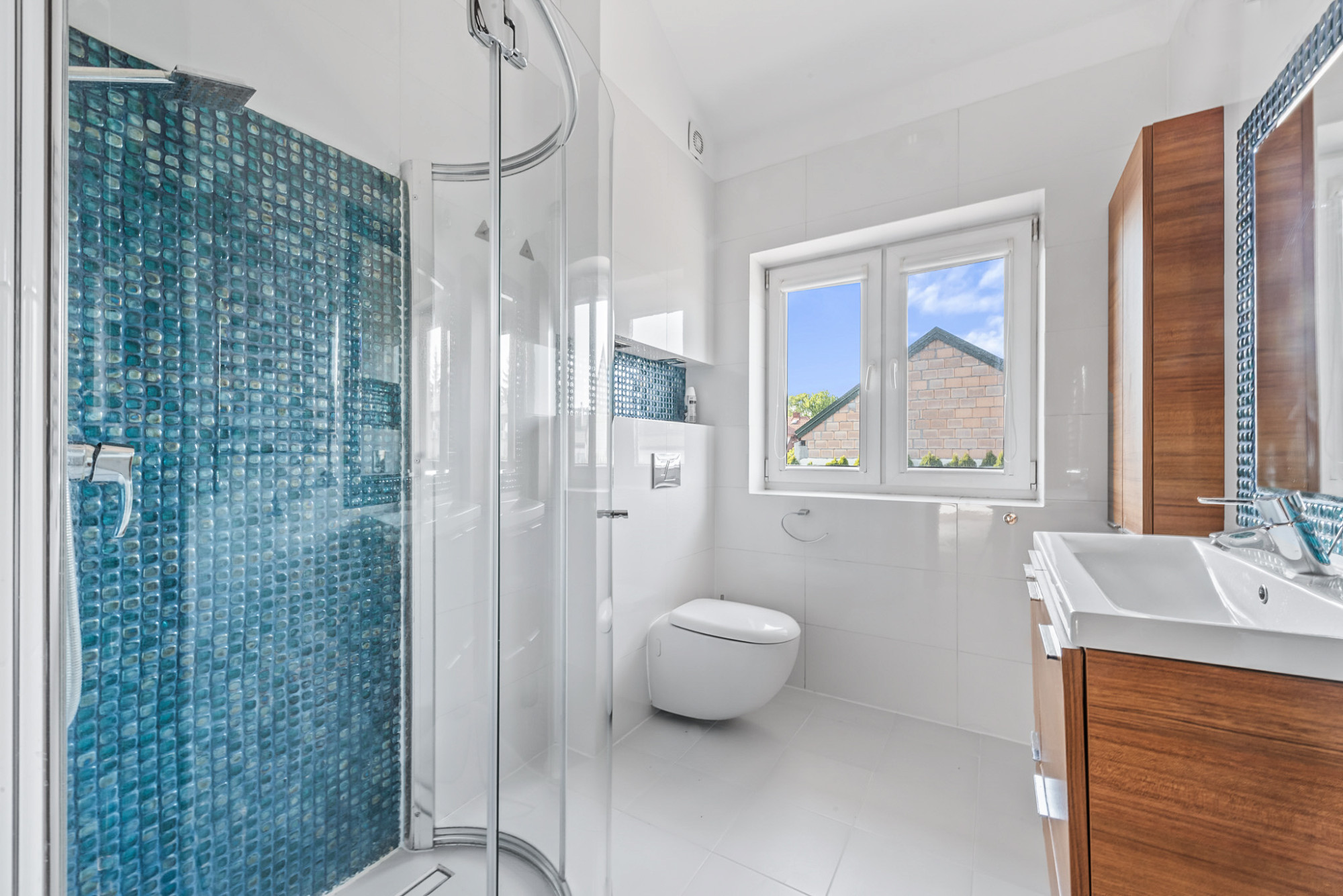 - łazienka przy sypialni Master, okno (wanna i kabina prysznicowa)