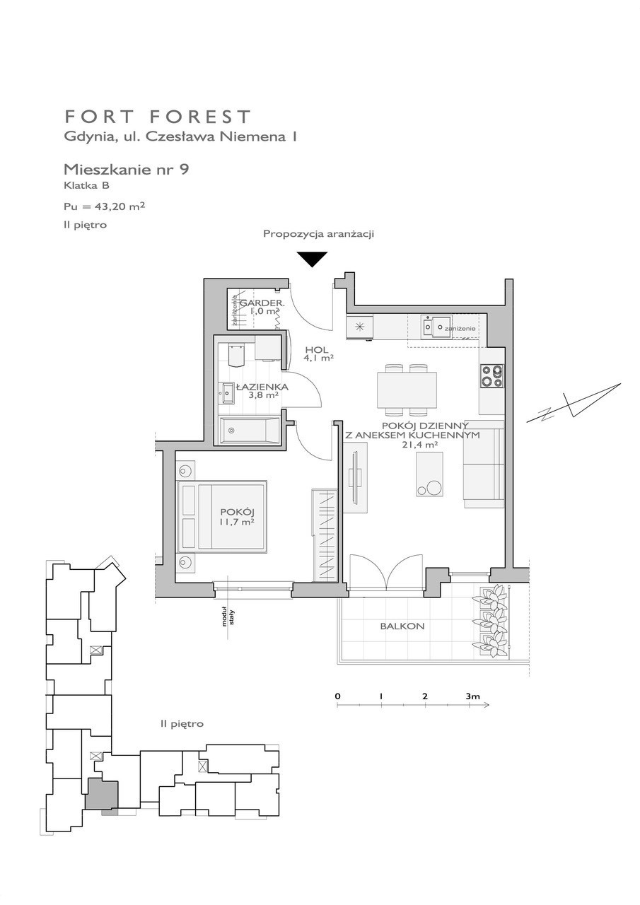 Dwupokojowe mieszkanie FORT FOREST GdyniaAvenue Estate prezentuje dwupokojowy, świeżo odebrany i zaaranżowany apartament na osiedlu FORT FOREST w Gdyni Wiczlinie.LOKALIZACJA Nieruchomość mieści się w wymarzonej lokalizacji zarówno do mieszkania na co dzień jak i typowo pod letnią rezydencję lub na pewną inwestycję. Tuż obok znajduje się Trójmiejski Park Krajobrazowy. Dla osób ceniących ciszę i spokój mieszkanie to urzeczywistnia najwyższe standardy harmonii i równowagi, gdyż położone jest przy samym lesie, a jednocześnie moment do morza, piaszczystej plaży i Centrum miasta. W pobliżu nieruchomości znajduje się zaplecze handlowo-usługowe, LIDL, ALDI, BIEDRONKA, Przychodnia, Fitness oraz Przedszkola i Szkoły. APARTAMENT składa się z otwartego, 22 metrowego salonu z panoramicznym widokiem na ogrody i zieleń lasu. Ogromne okna zapewniają idealne doświetlenie cały dzień, a balkon zaprasza na poranną kawę lub kolację przy blasku świec. Perfekcyjnie zaprojektowany aneks kuchenny wtapia się w tą przestrzeń i dodaje splendoru szlachetnymi materiałami wykończeniowymi oraz markowym AGD. Również od strony lasu znajduje się 11,7 metrowa sypialnia. 4 metrowy hol prowadzi nas do 3,8 metrowej łazienki, wyposażonej w ściankę prysznicową, umywalkę z dużymi szufladami, podświetlane lustro led i wc. Obok pomieszczenie gospodarcze- garderoba. Osiedle zostało przemyślane pod kątem zapewnienia możliwie jak największego poziomu bezpieczeństwa mieszkańcom. Cała inwestycja jest ogrodzona, a teren osiedla chroniony i monitorowany całodobowo. DODATKOWE INFORMACJE Do mieszkania przynależy miejsce postojowe w hali garażowej i komórka lokatorska dodatkowo płatne 52.000 pln. SZCZEGÓŁY OFERTY