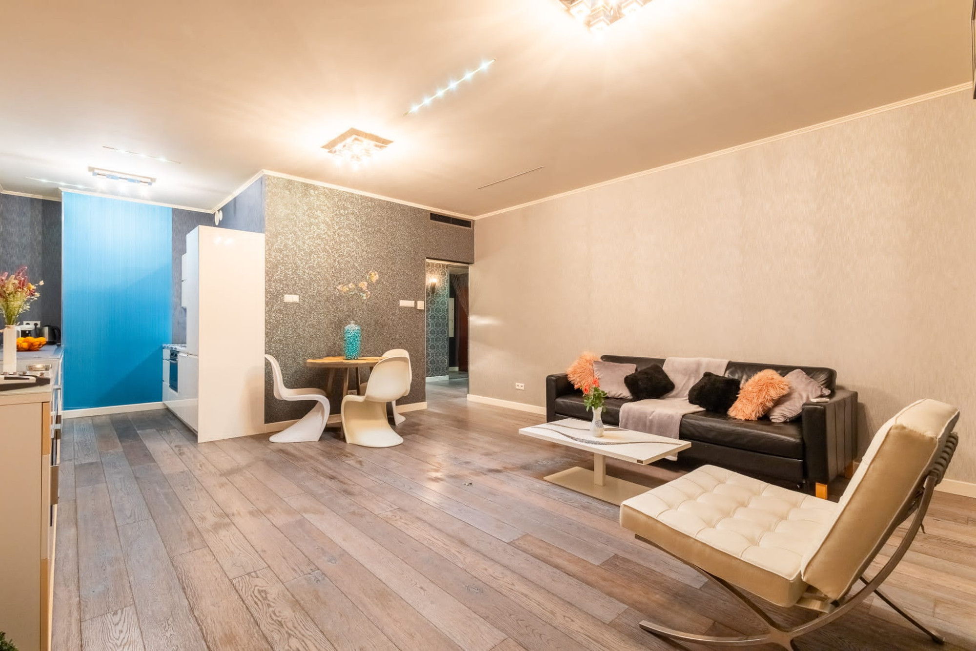 Budynek Apartament mieści się w jednej z wież kompleksu Platinum Towers - jednym z najbardziej prestiżowych adresów w centrum Warszawy. Do dyspozycji mieszkańców jest całodobowa recepcja, concierge i ochrona. Apartament mieści się na 14 piętrze - ostatnim, który loggie z której rozpościera się widok na centrum stolicy. Rozkład