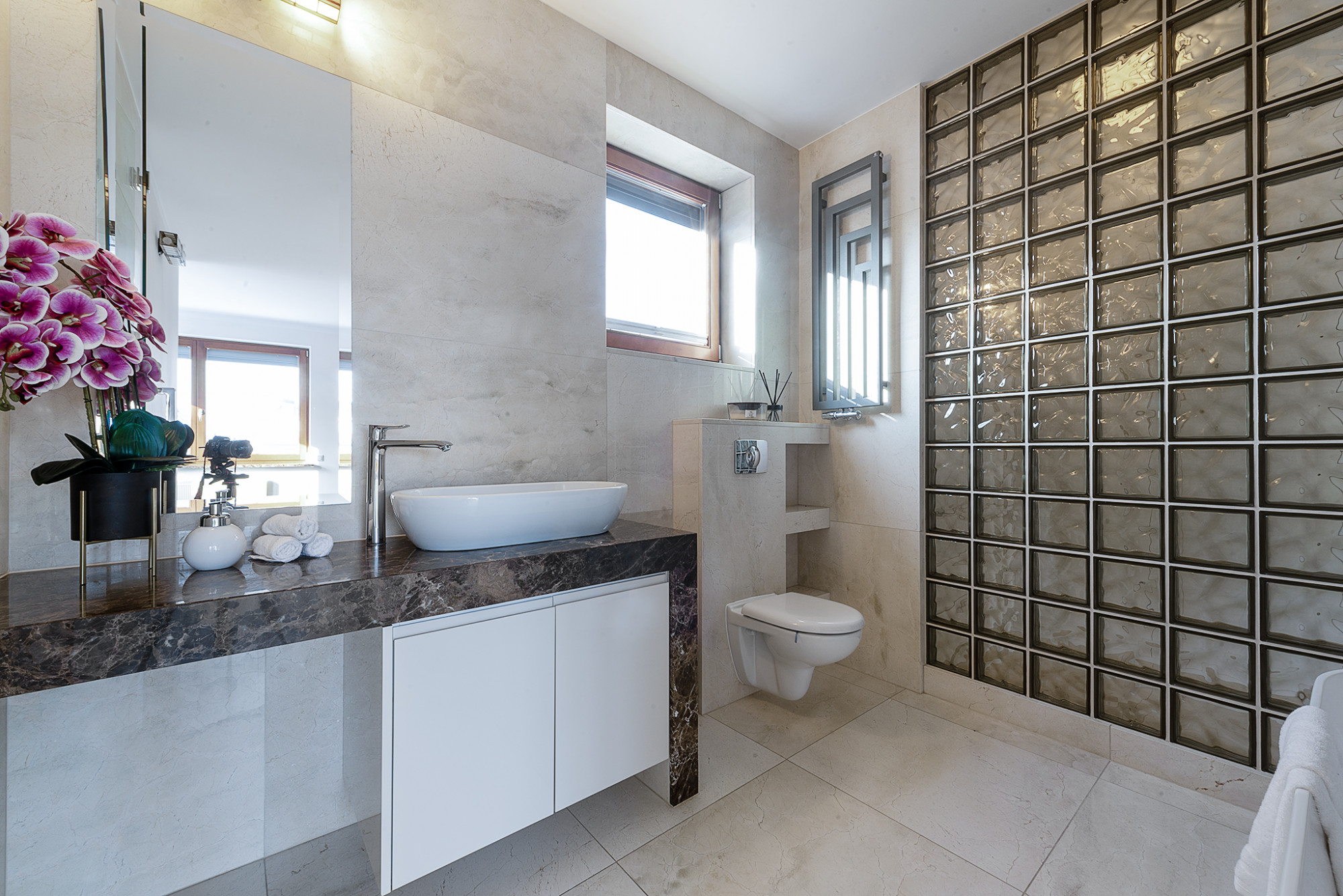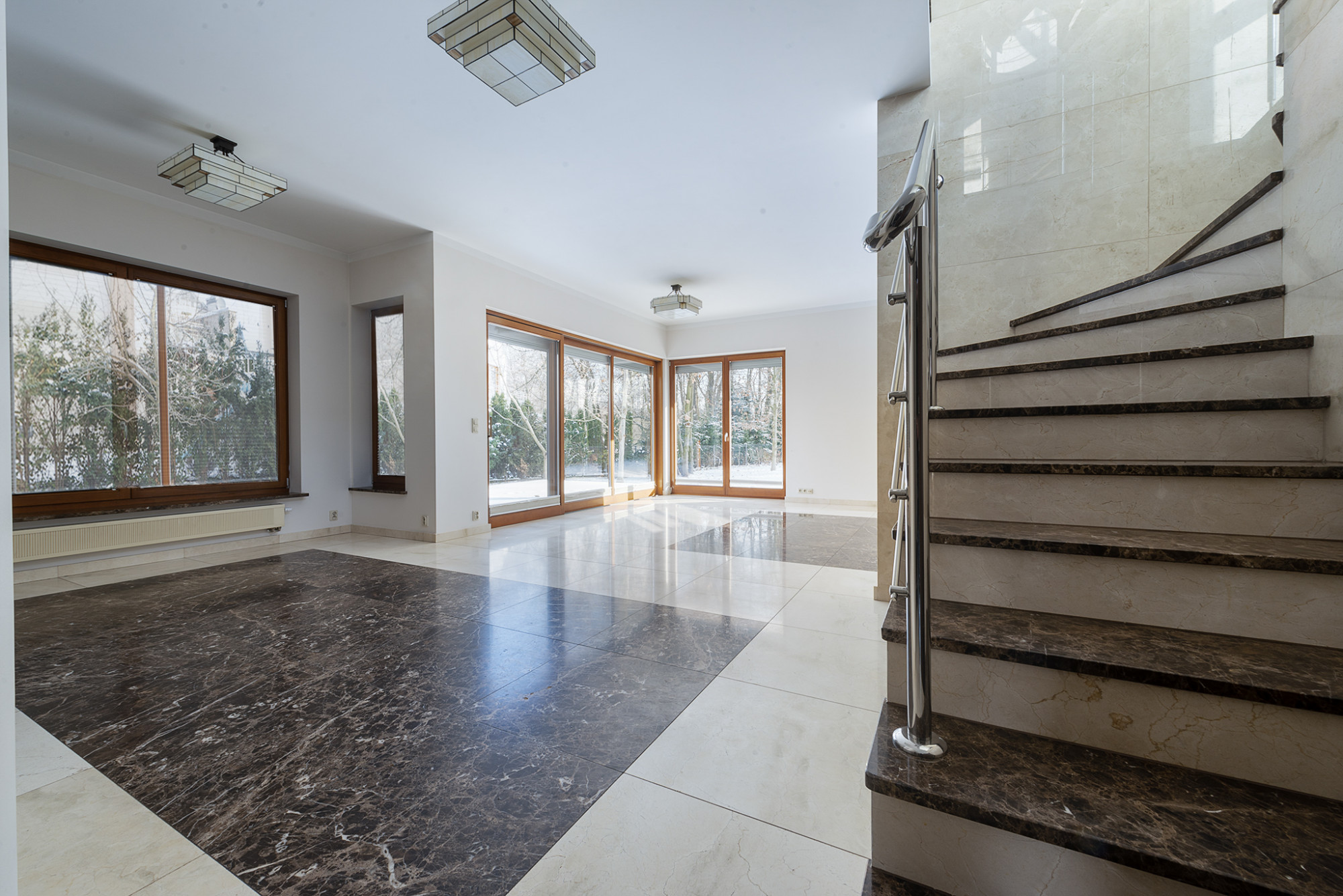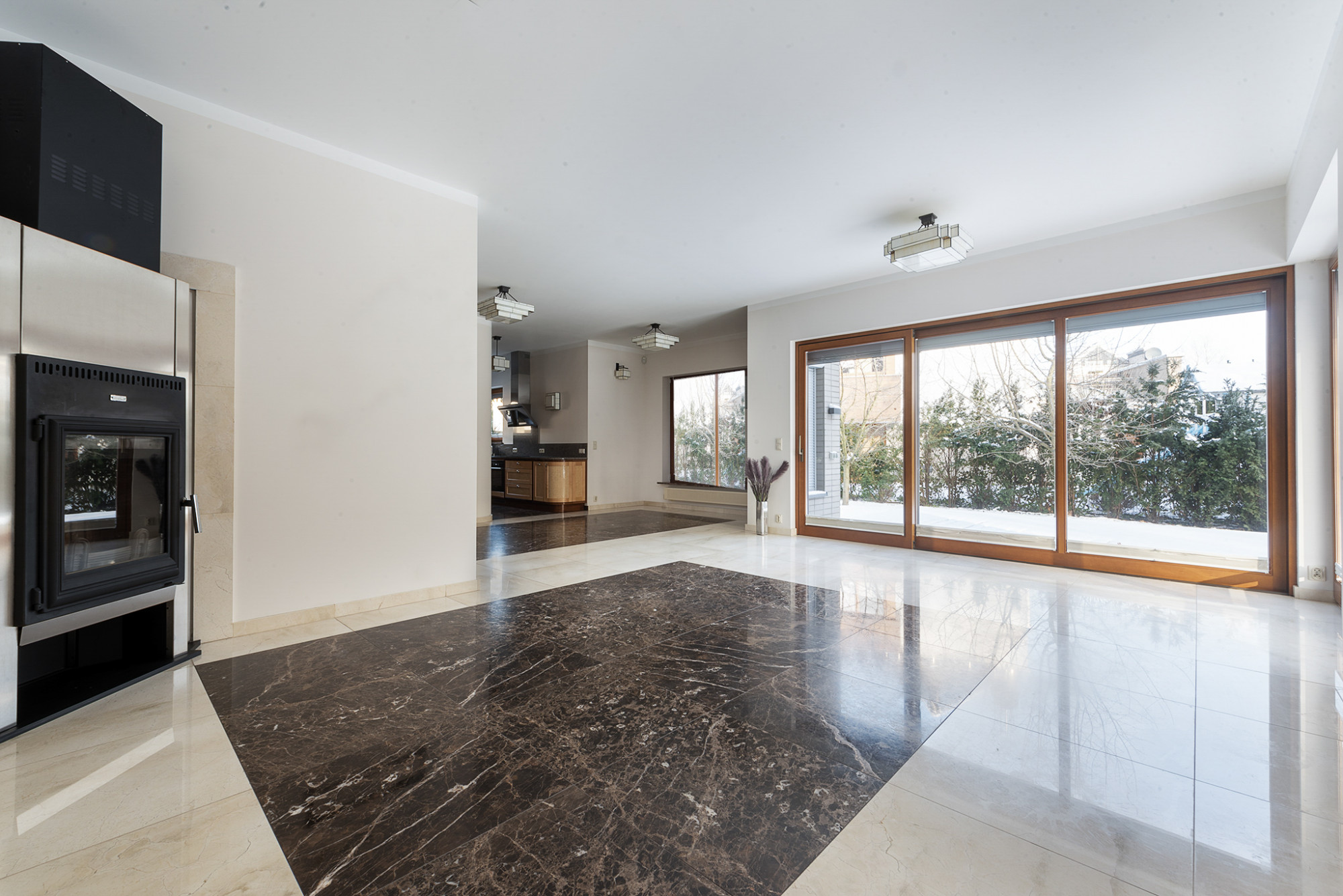 LOKALIZACJA Nieruchomość zlokalizowana jest na Kępie Zawadowskiej w komfortowej odległości od obwodnicy warszawy (2 km). Dojazd do centrum Warszawy około 35 min. Lotnisko Chopina około 25 min. W okolicy liczne trasy spacerowe oraz rowerowe, bliskość Wisły i Wału Wiślanego. Wilanów i okolice to również liczne szkoły międzynarodowe: British Primary School of Wilanow, American School of Warsaw, Szkoła Podstawowa Im. A. Einsteina, WBS - Polsko-Niemiecka Szkoła im. Willy’ego Brandta W pobliżu również liczne sklepy ogólnospożywcze, usługi, restauracje, przestrzeń rekreacyjna, parki i ścieżki rowerowe, Pałac i Park w Wilanowie. Zapraszam serdecznie na prezentację, dom idealnie nadaje się dla rodziny. We present a house for sale in Wilanów, located in a monitored gated community in a private and green area. The house is finished to a high standard with natural Spanish and Italian stone. Convenience of use. ADVANTAGES - Cozy and private surroundings - Highest quality finishing materials - Perfect condition - ready to move in - Very large plot - Ideal for a family PROPERTY The house is finished to a high standard with beautiful details. On the floors, in the bathrooms and in the staircase, we have Italian Emperador marble combined with Spanish Crema Marfil stone. Over 40 custom-made, hand-cast chandeliers with Tiffany Favrile Glass. Air-conditioning in all rooms. The bedrooms have oak hard wood flooring. The condition of the house - ideal for living. A very large garden entirely located behind the house, in a very quiet and private place (bordering a green area), allows for many options (swimming pool, playground), a huge terrace made of exotic wood by the living room overlooking the plot. ROOM LAYOUT Ground floor: