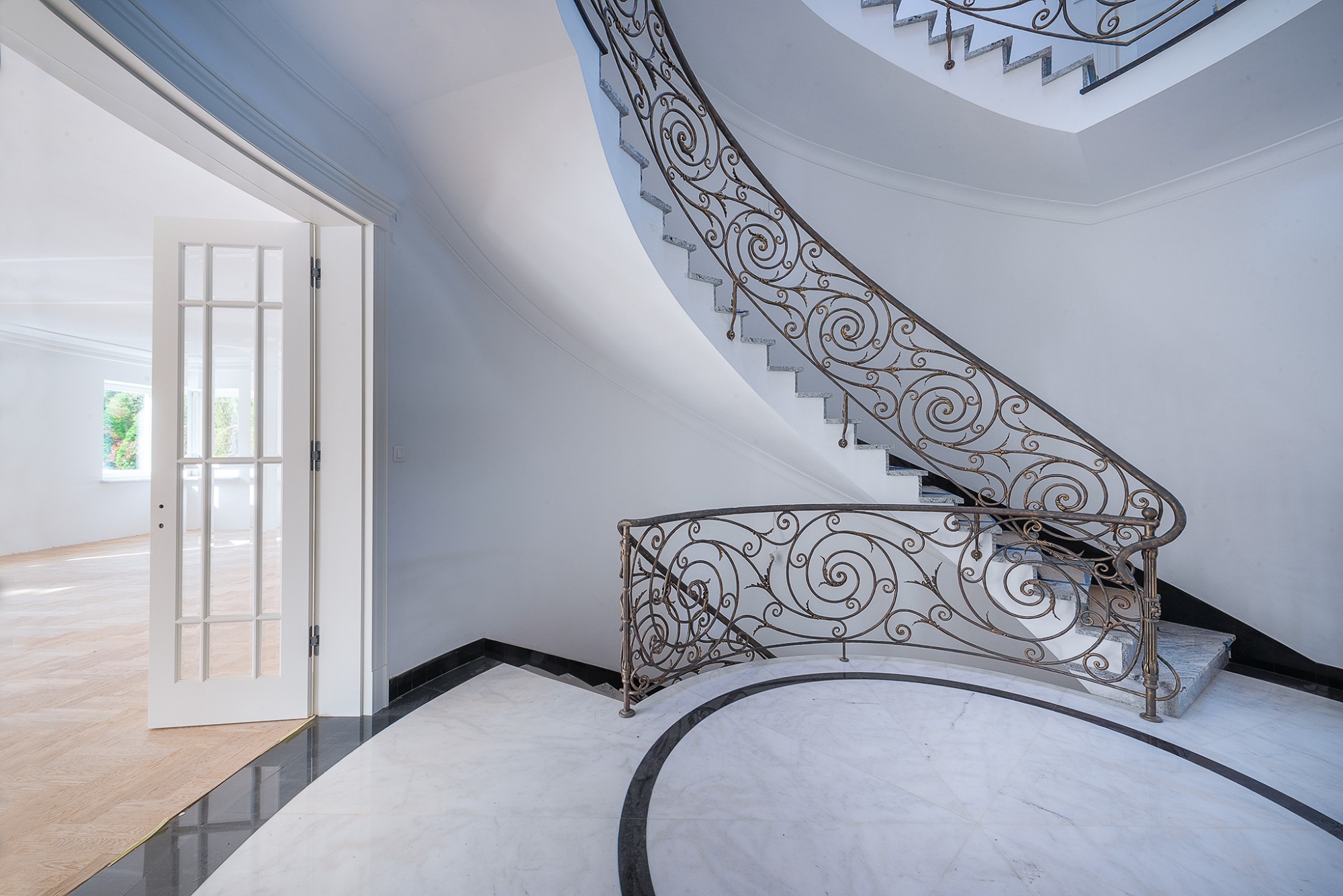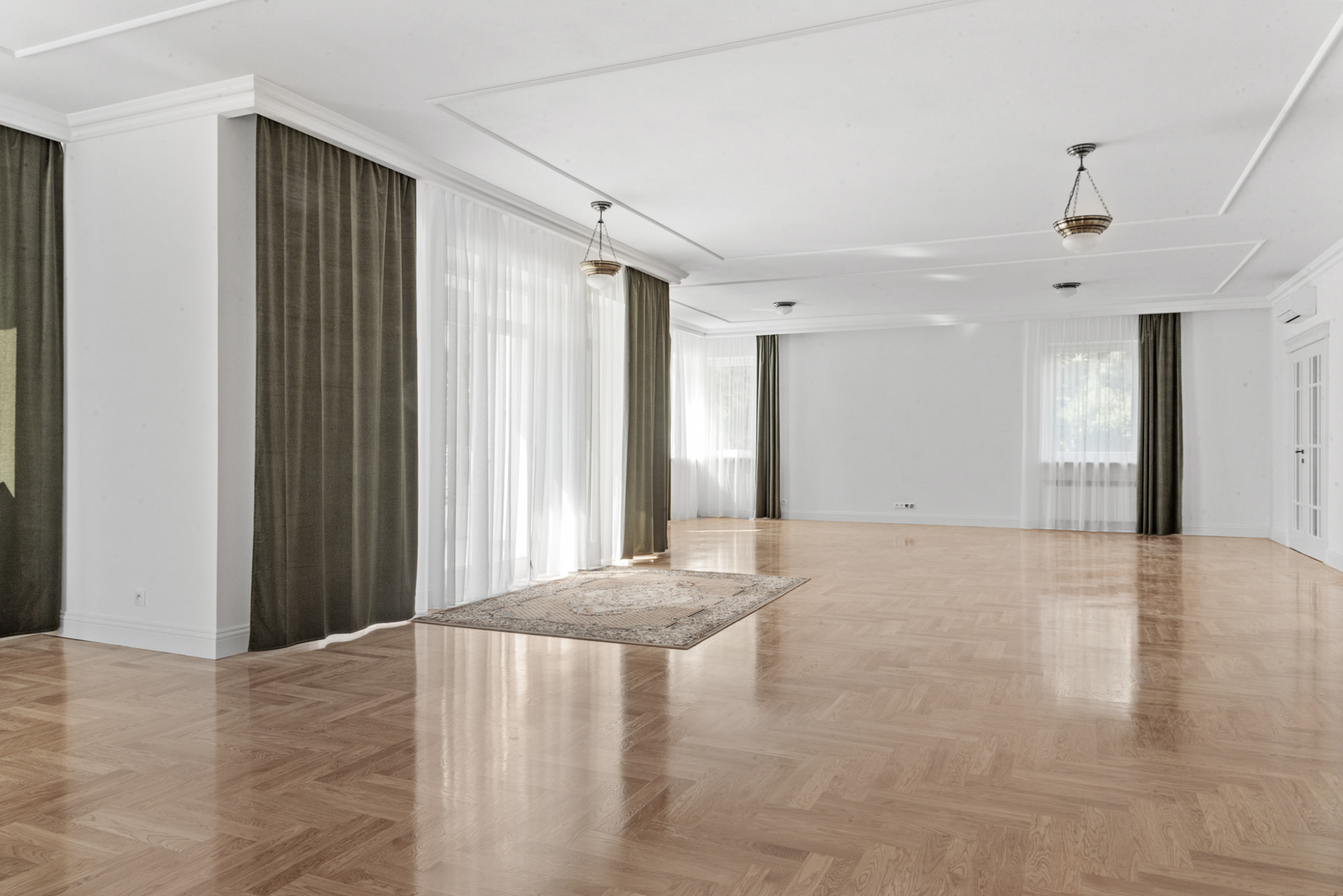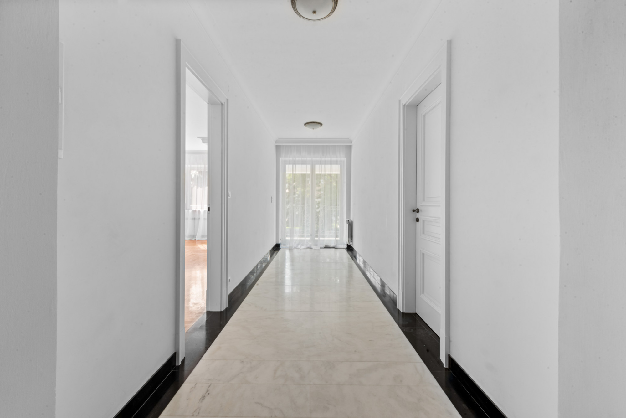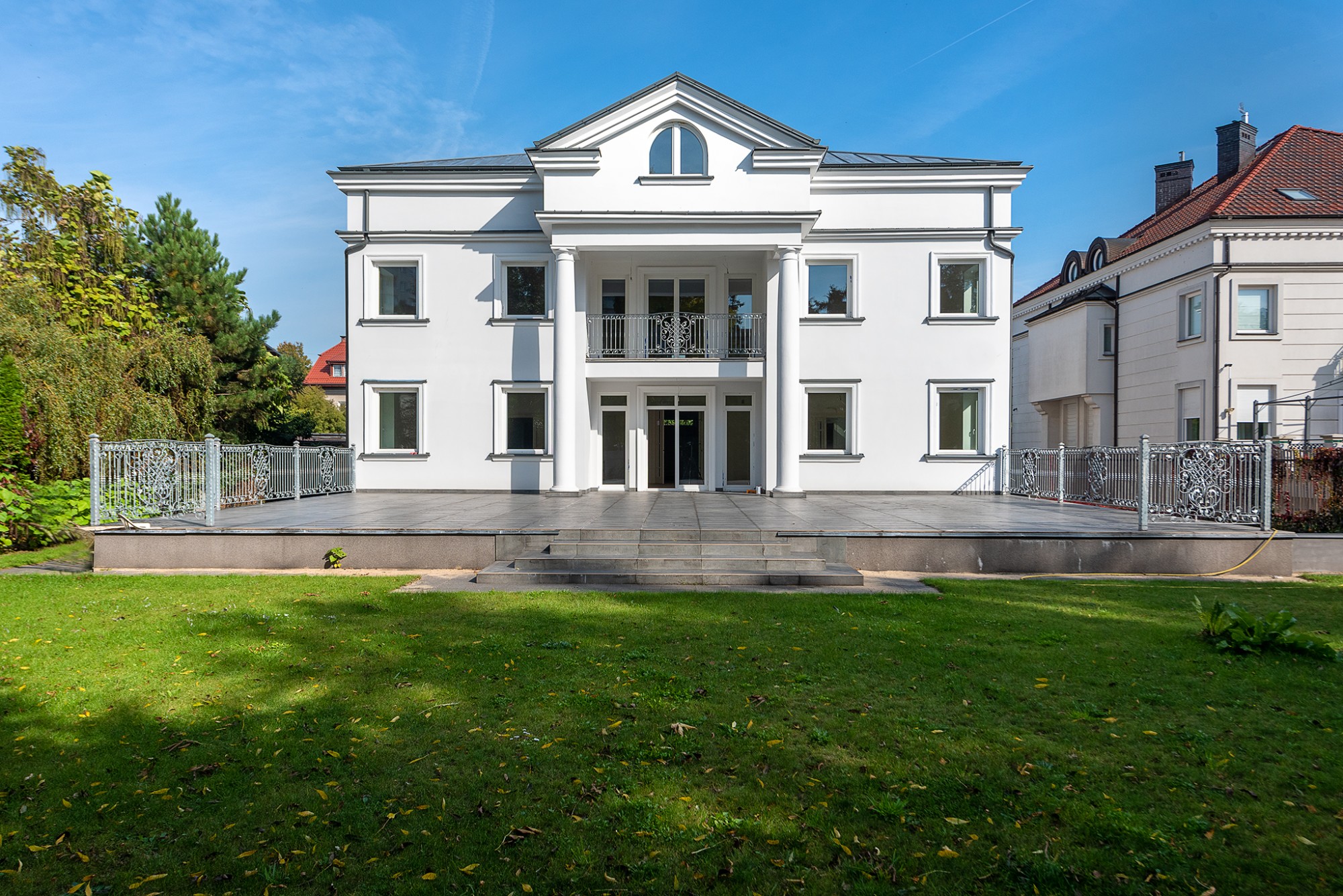 Zapraszam na prezentację tej wyjątkowej rezydencji. Avenue Estate presents a unique residence with a beautiful garden, located in the prestigious part of Królewskie Wilanów. Offer addressed to embassies with the possibility of renting for other purposes. Advantages • prestigious location • staircase and bathrooms finished with marble and granite with a water floor heating system • finishing with the highest quality materials • spacious terrace • 6-car garage • large wooden windows and doors • automatic garden irrigation Property The presented residence is a very picturesque, unique building with an area of 1100 m2. The style of the building, taken from the classical architecture, delights with delicacy and harmony. Open spaces and non-standard room heights of over 3 m give it a functional, but also a dignified character. The property has been designed and finished with full attention and attention to detail. The highest quality materials were used for its finishing. The residence is built of natural double brick, perfectly insulated with polystyrene and mineral wool. On the roof insulated with wool, there is a titanium-zinc graphite sheet. Large wooden windows and doors made to order provide a sense of spaciousness and perfect lighting for the property. The residence is located on a plot of 1320 m2 with a beautiful garden and a 152 m2 terrace with southern exposure. Room layout Ground floor • representative entrance hall with a staircase finished with a hand-forged balustrade, • spacious living room / 110 m2 / with access to a large 152 m2 terrace connected to the garden • kitchen, • dining room, • office, • wardrobe • toilet First floor • four bedrooms, including two with bathroom and wardrobe • two bathrooms • laundry • wardrobe • hall • two balconies Attic • open space for your own arrangement of about 100m2 • bedroom • two bathrooms • two wardrobes • hall Basement • large garage for 6 cars with an area of 130 m2 • two utility rooms • two kitchens • two bathrooms • a rest room • recreation / fitness room • boiler room Location The property is located in the heart of Królewski Wilanów, which guarantees peace and a prestigious address. The area is full of stately homes, embassies and beautiful apartments. In close proximity, there are prestigious private schools: The British School, Akademia High School, Willy-Brandt School, Lycee Francais de Varsovie, International American School, International European School, shops, service points and restaurants. Well-prepared, numerous bicycle paths lead to the Culture Park in Powsin, a few kilometers away, and to the beautiful, wild beaches of the Vistula.
