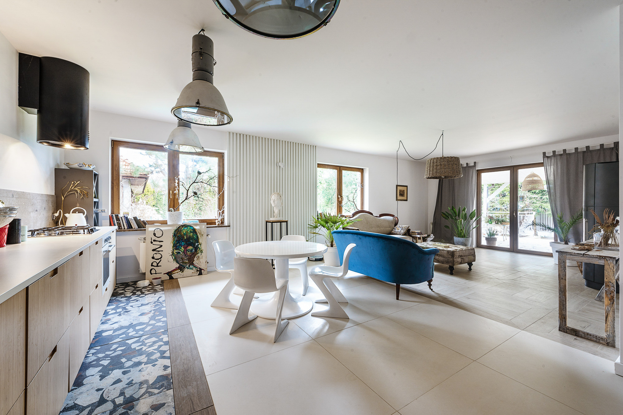 Suburban villa with a usable area of 226m2, combining artistic and Mediterranean style. This remarkable house was built in 2005. At the end of 2020, it underwent a major renovation, which further emphasized its advantages. As a result, the residents have at their disposal a practically designed space, a very good standard of finish or an atmospheric terrace. The great advantage of the property is a beautiful garden which offers: its own backyard vegetable garden, aesthetic flora, a relaxation zone or a summer kitchen with a grill. An important addition is also the attic with an area of 90m2, which can be easily adapted to an additional floor.